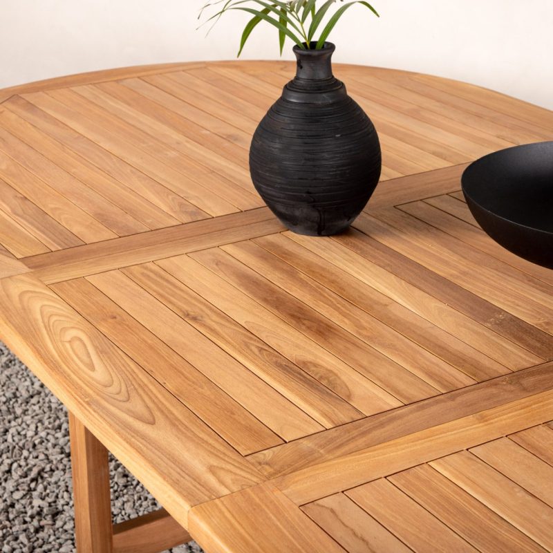 Tutvustame Kenya ovaalset söögilauda, mis on valmistatud vastupidavast tiigipuust. See laud on ideaalne väliruumidesse nagu rõdud, terrassid ja aiad, mahutades mugavalt kuus inimest, muutes selle suvisteks kogunemisteks ideaalseks. Tiigipuu materjal tagab pika eluea ja lihtsa hoolduse tänu oma looduslikele õlidele.