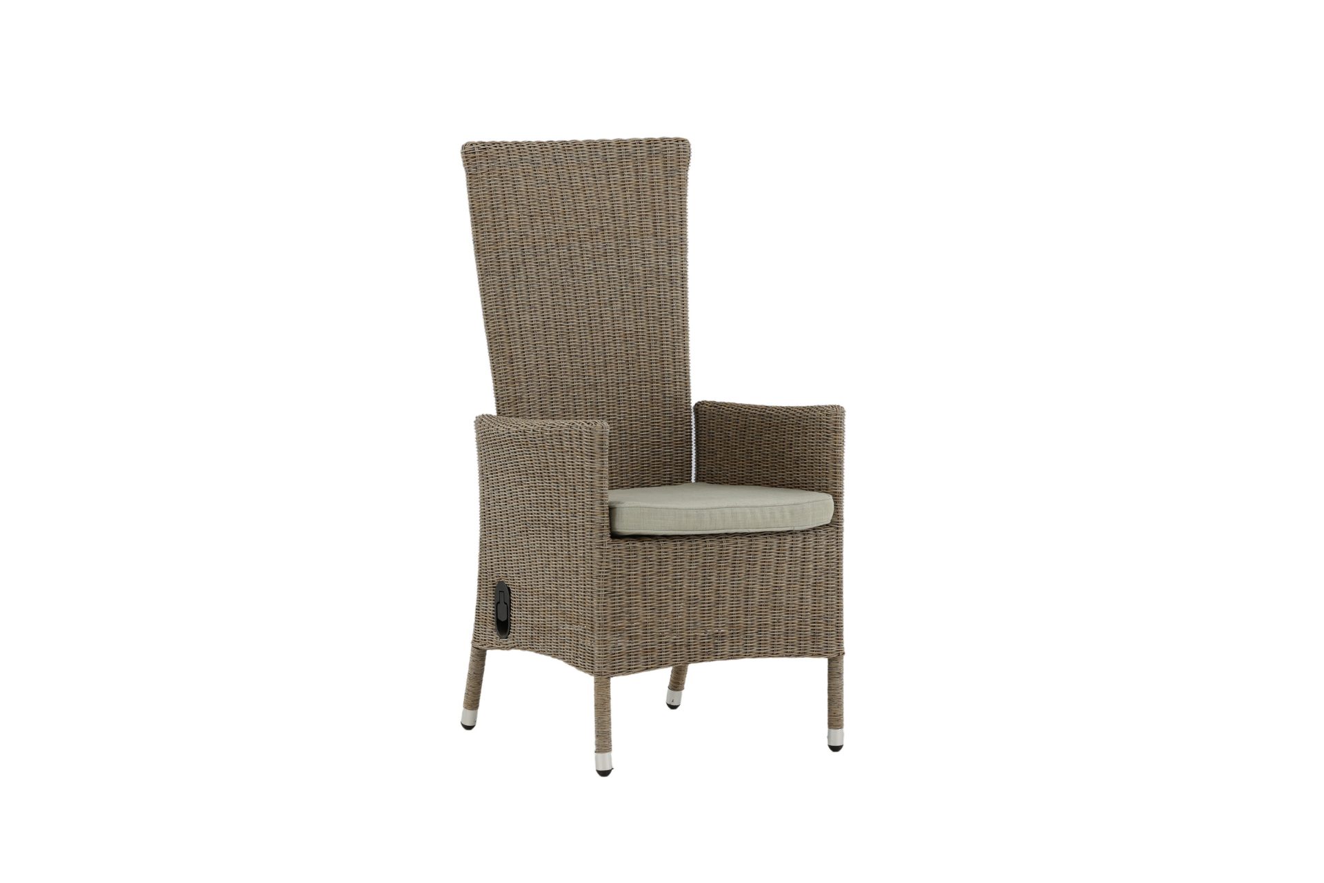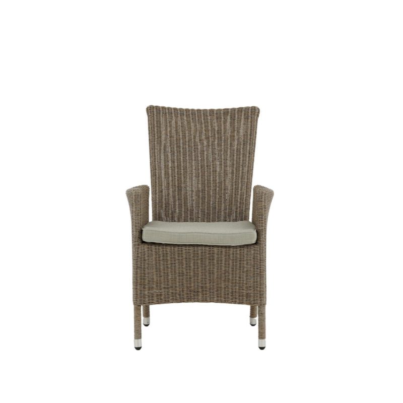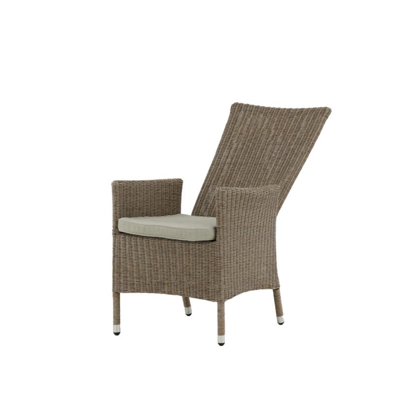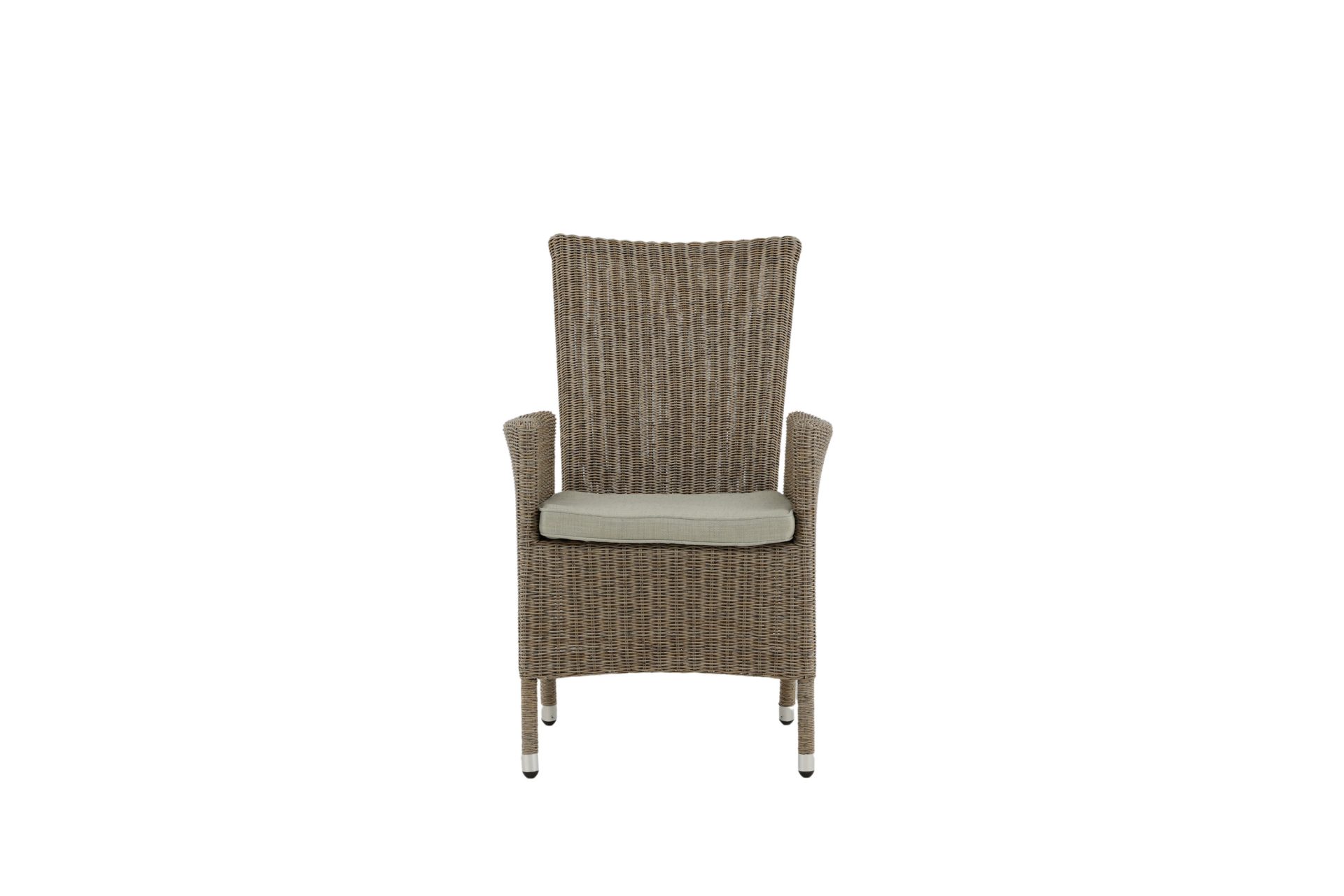 Tutvustame Toscana lamamistooli, klassikalist ja vastupidavat tugitooli, mis on ideaalne õue söömiseks. Tool on valmistatud alumiiniumraamiga ja kunstlikust roost, pakkudes nii mugavust kui ka pikaealisust. Veidi kõrgem kokkuklapitav seljatugi lisab teie õuealale elegantsi.
