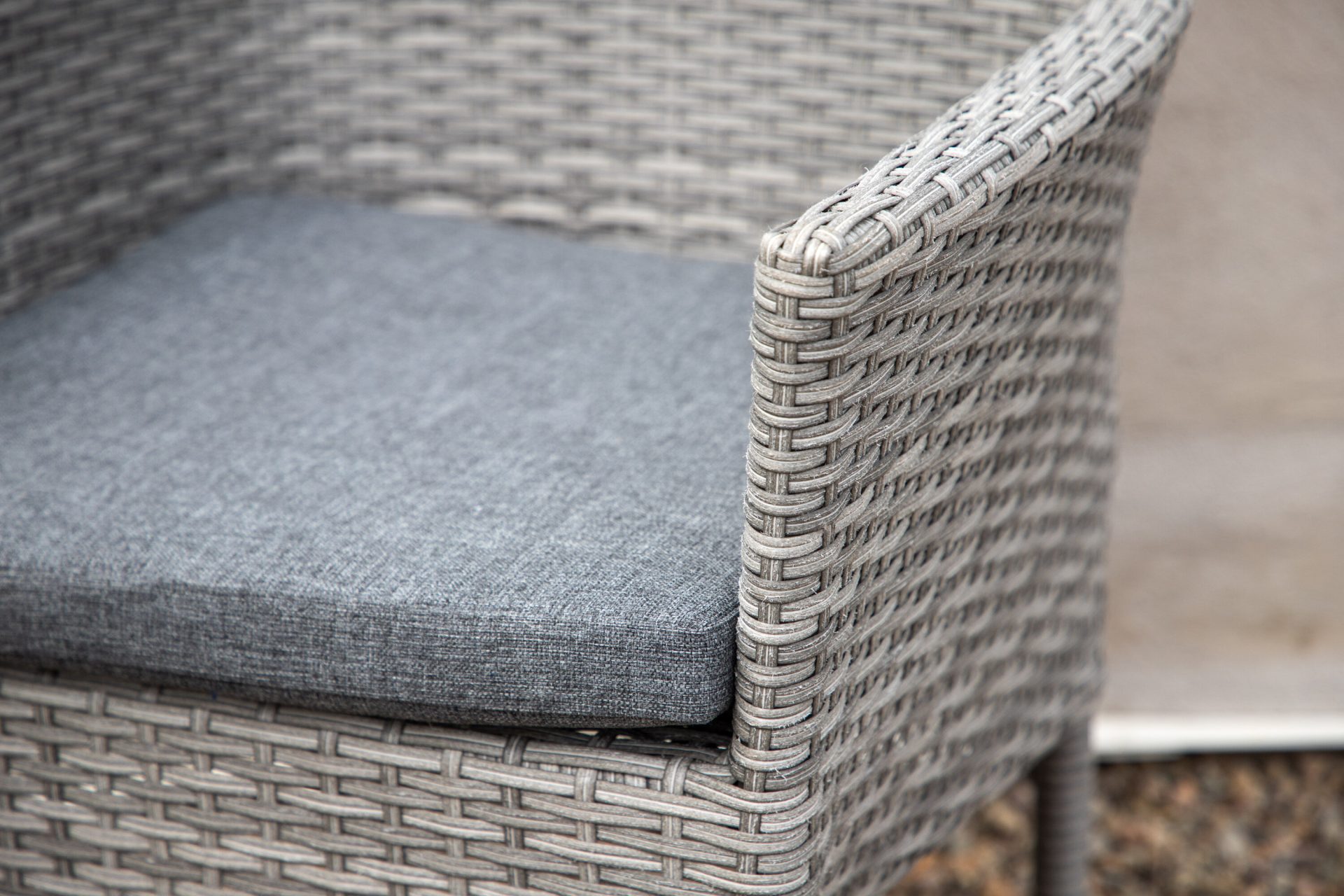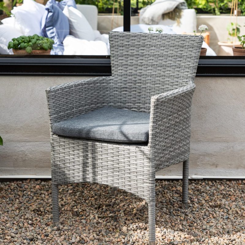 Kogege lõõgastumist ja keerukust Malina’s sisalduva polüestrist padjaga lisamugavuse jaoks. Ajatu halli värvi tool lisab teie õuealale luksusliku puudutuse.