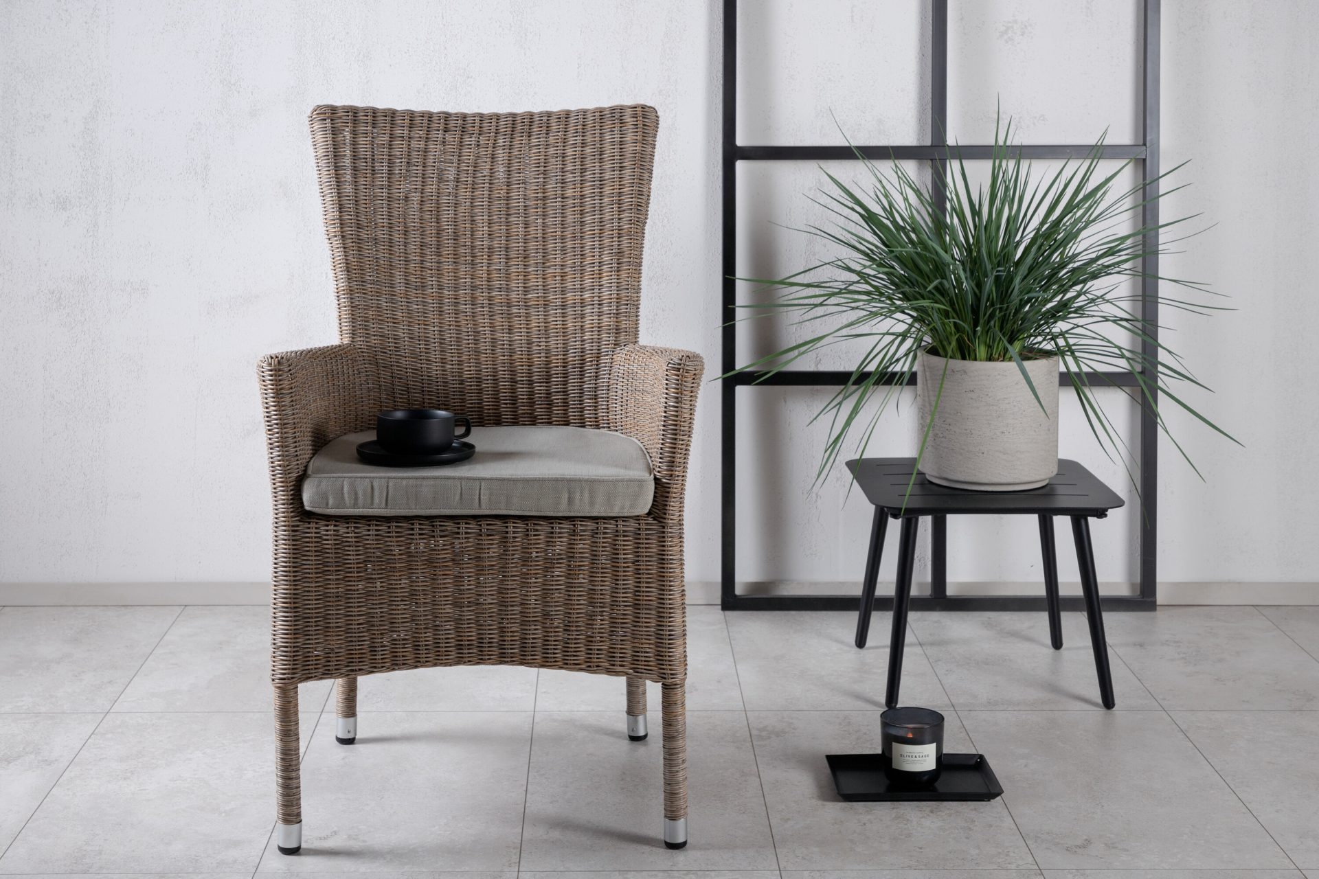 Tutvustame Toscana söögitooli 2-pakki, mis on ideaalne lõõgastava õhkkonna loomiseks teie terrassil sel suvel. See klassikaline beež tugitool on valmistatud vastupidavast alumiiniumist ja kunstlikust rotangist, pakkudes mugavust ja stiili teie välistingimustes söögikogemuseks.