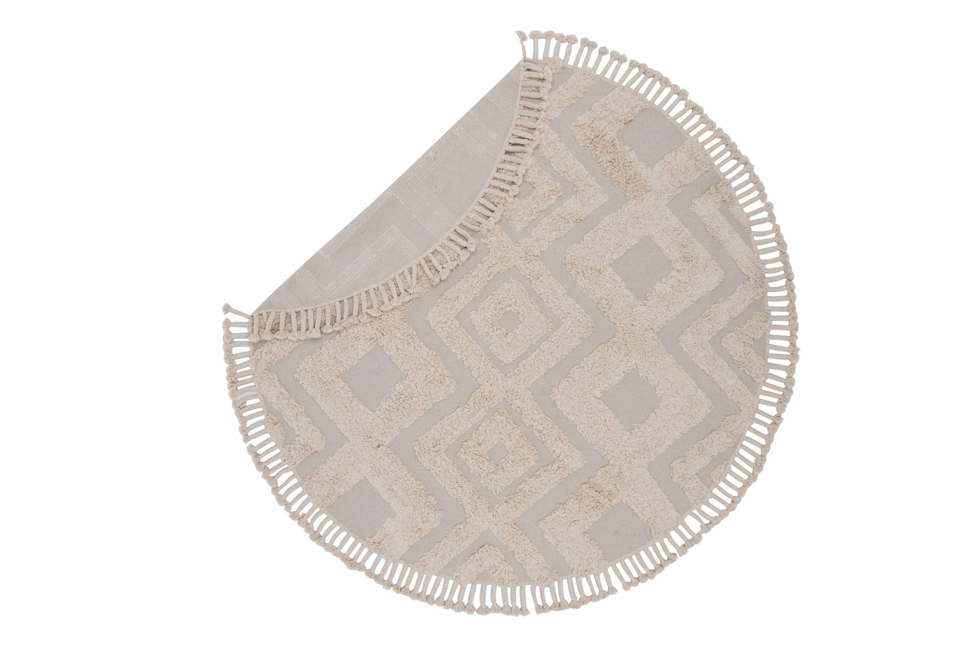 Tutvustame Hilma ümmargust puuvillast vaipa offwhite toonis! Hilma on trendikas ristkülikukujuline vaip, mis on valmistatud maalähedast tooni puuvillast, millel on ühel küljel narmastega siksakid. See looduslik ja stiilne matt lisab teie ruumi väikese lisapuudutuse.