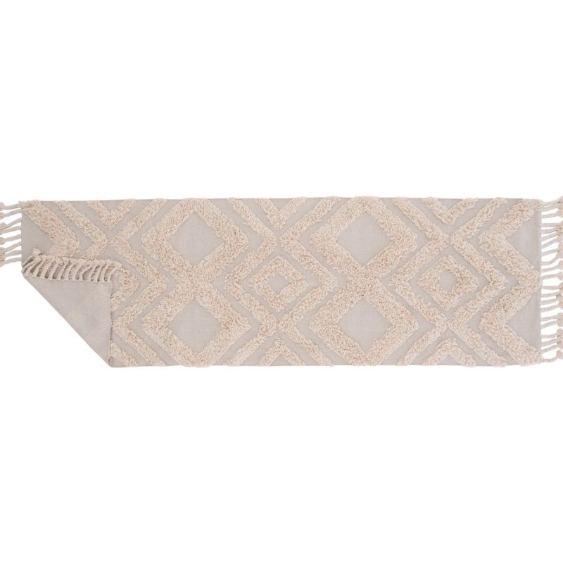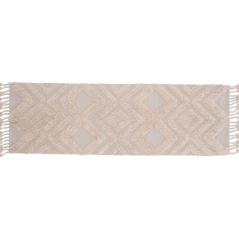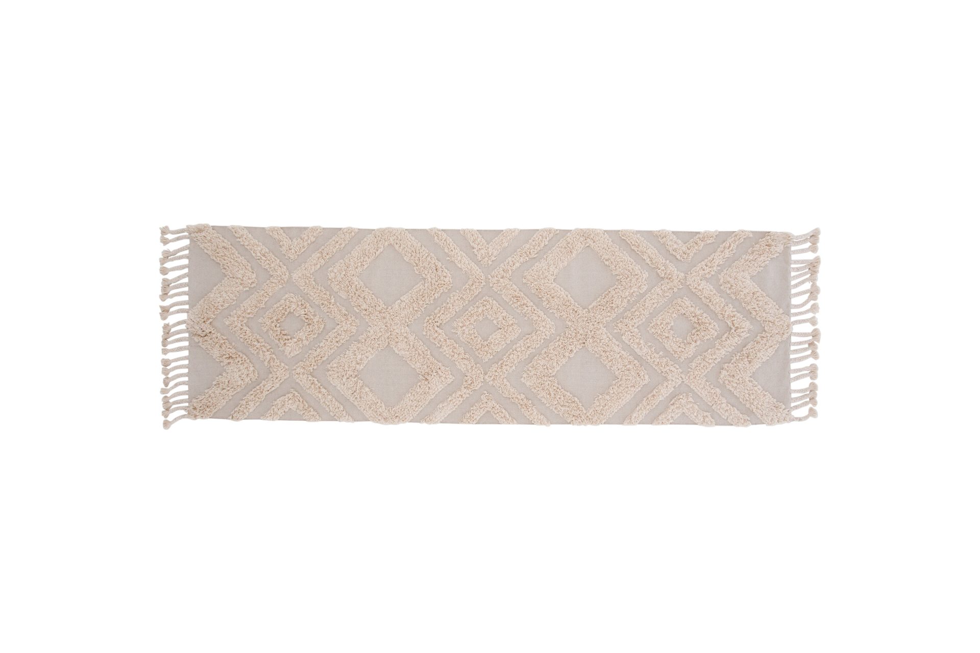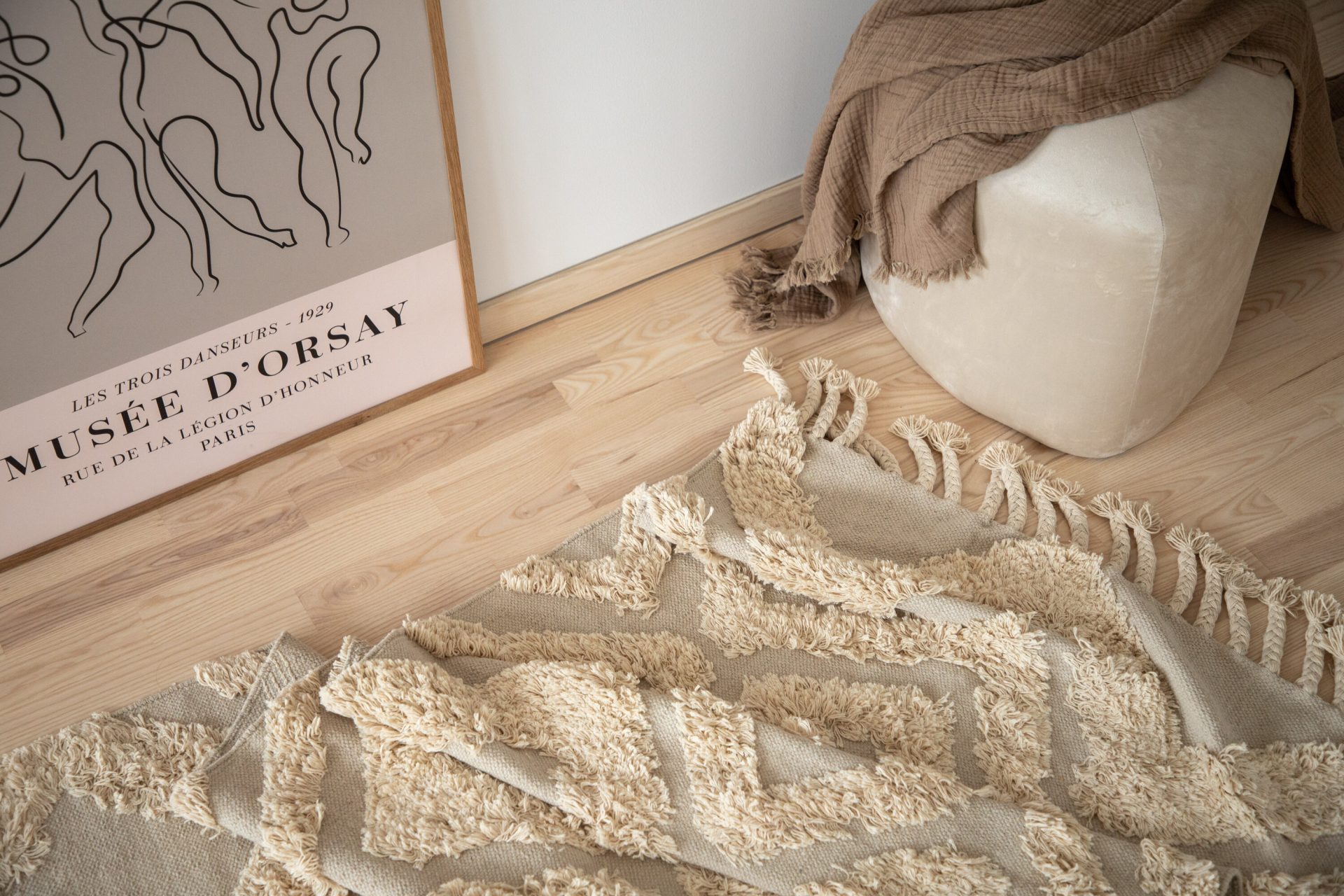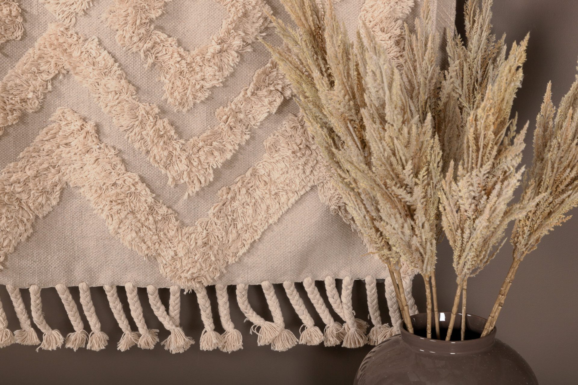 Tutvustame Hilma puuvillast valmistatud ristkülikukujulist elevandiluu värvi vaipa! Hilma on trendikas ristkülikukujuline vaip, mis on valmistatud maalähedastest toonidest puuvillast, millel on siksakilised narmad. See loodusliku värvusega matt lisab teie toa sisustusele lisapuudutuse.