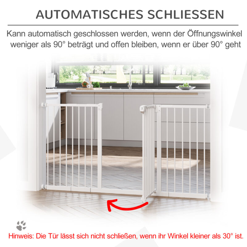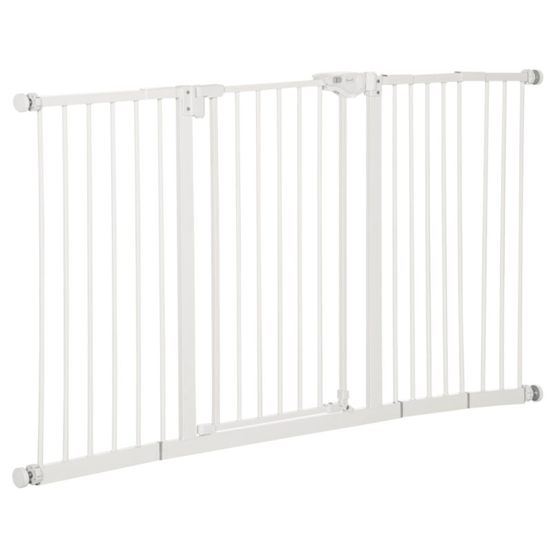 See laiendatav ja vastupidav turvavärav aitab hoida lemmikloomad turvaliselt kindlaksmääratud alal. Reguleeritav laius 136,3–147,5 cm koos kolme laiendusega (17,5 cm, 20,3 cm, 30,5 cm) võimaldab seda kohandada erinevate ukseavade ja treppide jaoks. Automaatne sulgumismehhanism tagab, et värav sulgub ise, kui see jääb alla 90° nurga alla. Kahekordne lukustussüsteem lisab täiendavat turvalisust, võimaldades täiskasvanutel avada värava ühe käega.