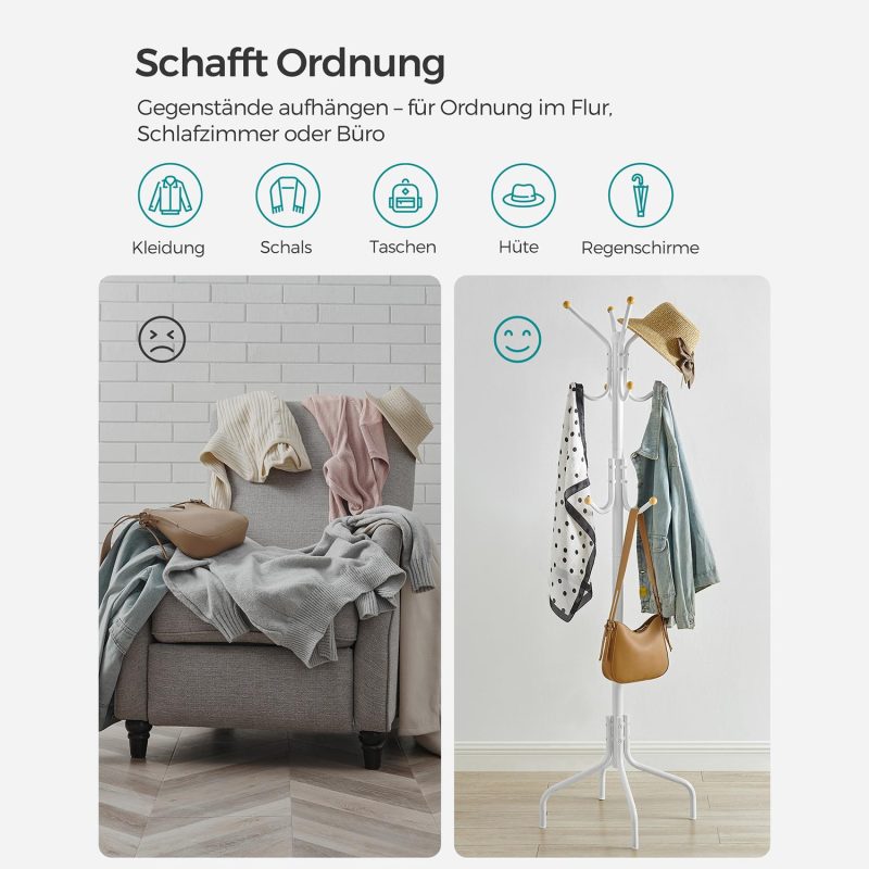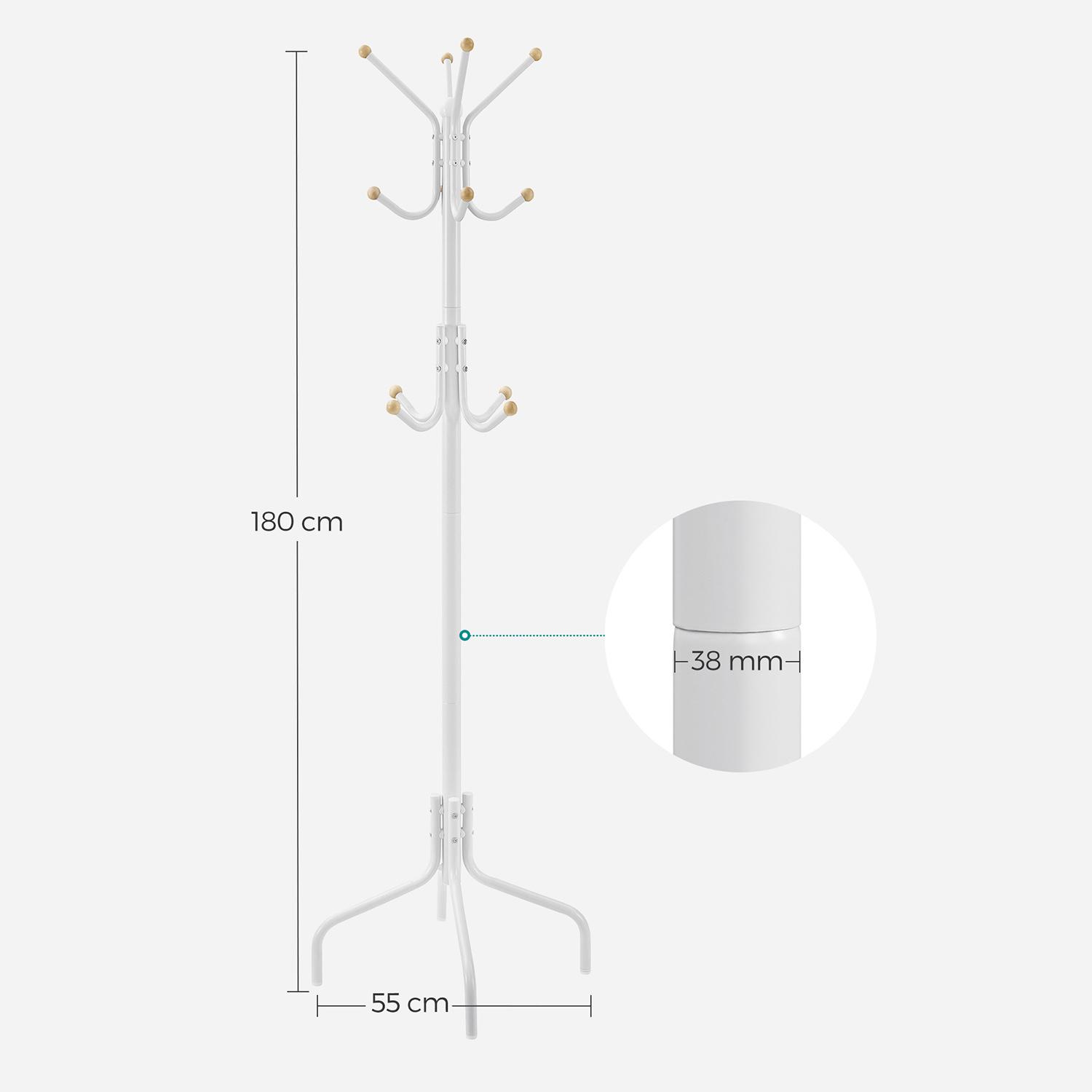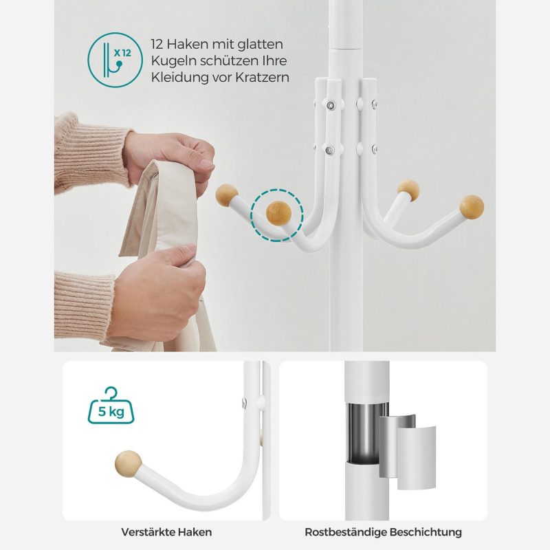 Tootekirjeldus: Värv: Valge Materjal: Teras Suurus: 55 x 55 x 180 cm (L x K x S) Kaal: 2,8 kg Maksimaalne staatiline koormus konksu kohta: 5 kg