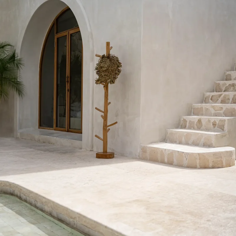 Meie kaunis tiikpuust riidepuu lisab kauni ja loomuliku boho iseloomu teie vannituppa, magamistuppa, esikusse, basseini või mis tahes muusse väliruumi. riputage üles!