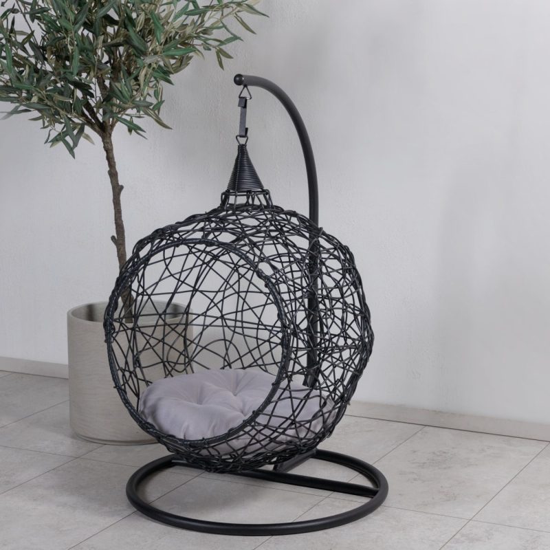 Tutvustame Lexi ripptooli, mis on täiuslik lisand pere lõbusateks hetkedeks! See ripptool on musta raamiga, mustast korvist ja halli patjaga. Laske oma pisikestel, karvastel sõpradel ja isegi kassil nautida suve stiilselt. Tool on valmistatud polüetüleenist, kunstlikust rotangist ja alumiiniumist, mis teeb selle nii vastupidavaks kui ka stiilseks.