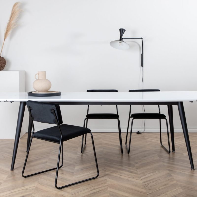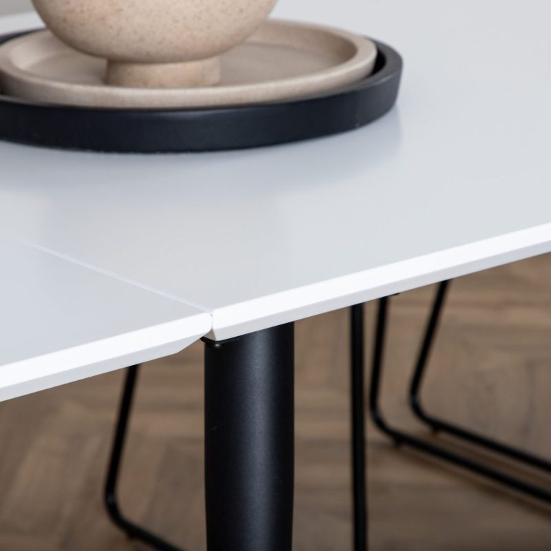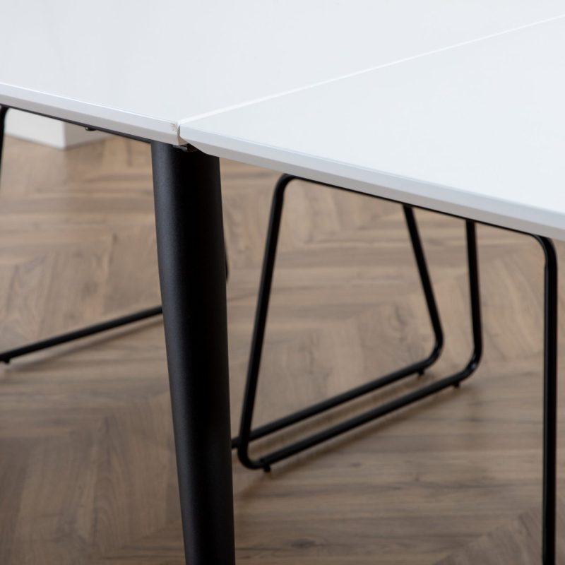 Tutvustame Jimmy söögilauda – klassikaline, stiilne ja praktiline mööbliese teie koju. Laua pealispind on valge HPL ja MDF spooniga ning mustade metalljalgadega, mis muudab selle sobivaks igasse interjööri. Tänu laiendatavale disainile on see ideaalne väikeste koosviibimiste või suurte pidude korraldamiseks. Kombineerige seda oma lemmik söögitoolidega, et luua võluv keskpunkt, kus pere ja sõbrad saaksid koguneda.