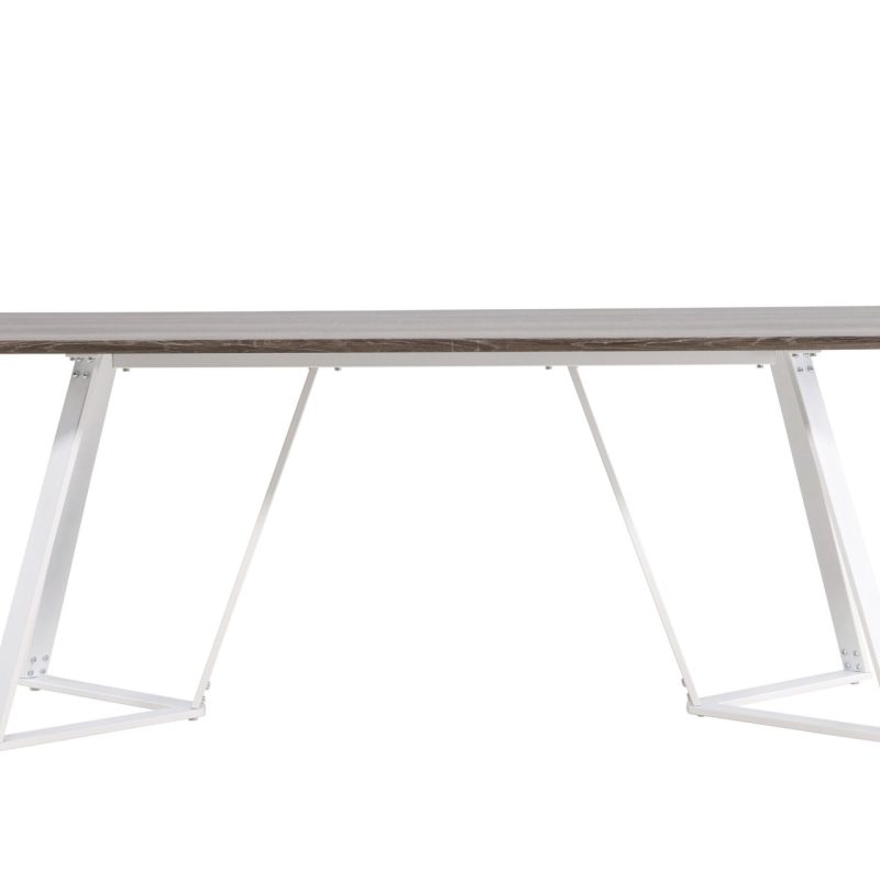 Tõsta oma söögitoa ilmet Marina söögilauaga hallis “tamm” valgete jalgadega. See stiilne laud on varustatud maalähedase MDF lauaplaadiga ja dekoratiivsete valgete metalljalgadega, lisades teie koju võlu. Kohanda oma söögikogemust, sidudes seda oma lemmiktoolidega.