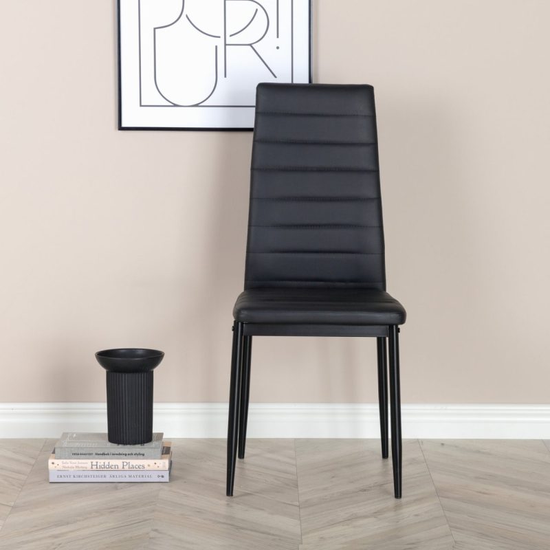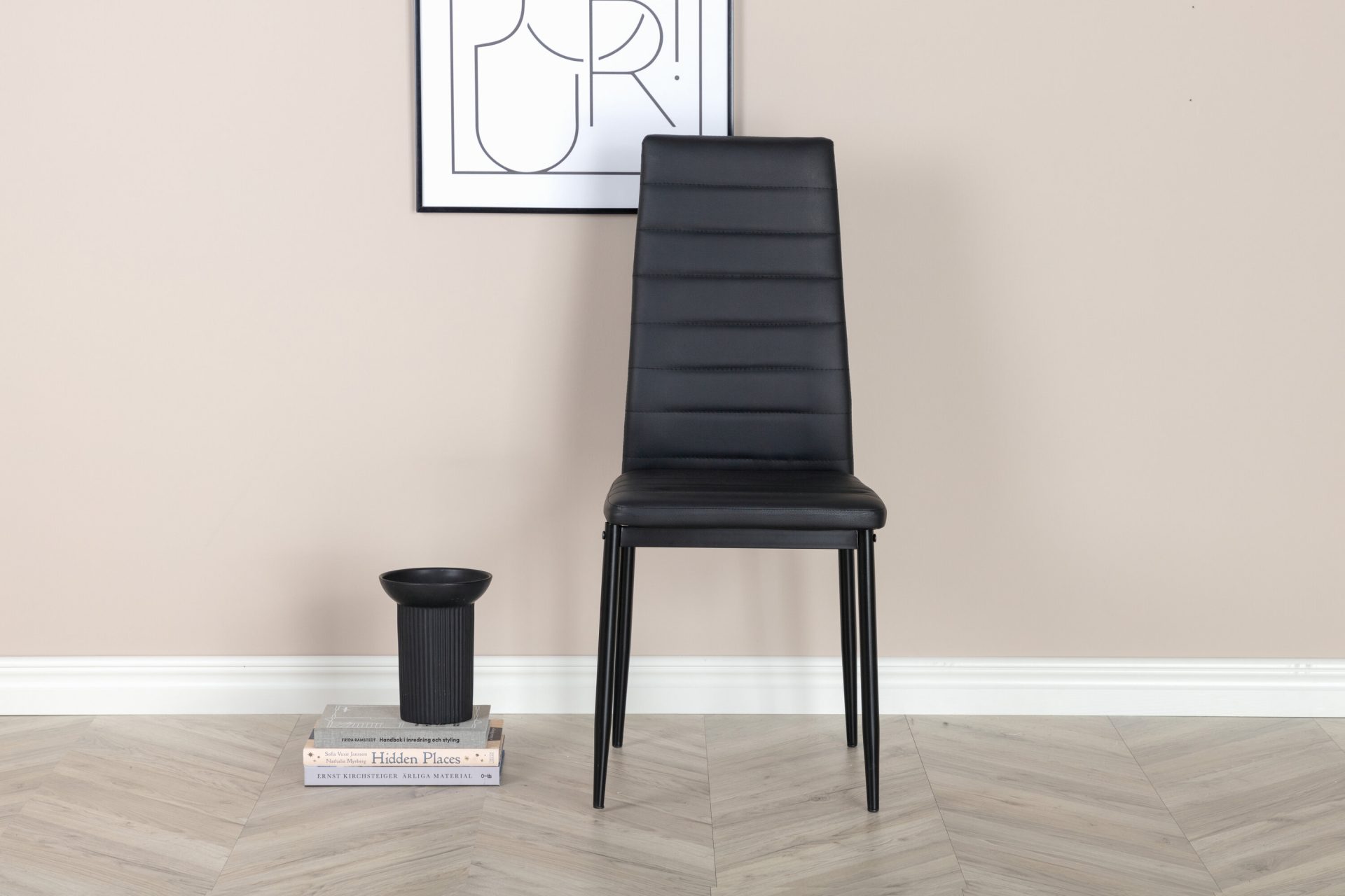 Tõstke oma söögikogemus uuele tasemele Slim High Back söögitoolide 2-pakiga. Need toolid on kujundatud stiilse modernse disainiga, millel on kõrge seljatugi ja must kunstnahast polsterdus. Musta pulbervärviga metalljalad lisavad igale söögitoale elegantsi. Mugavalt polsterdatud, need toolid on ideaalsed pikaks vestluseks laua ümber. Kokkupanek on lihtne ja kiire.