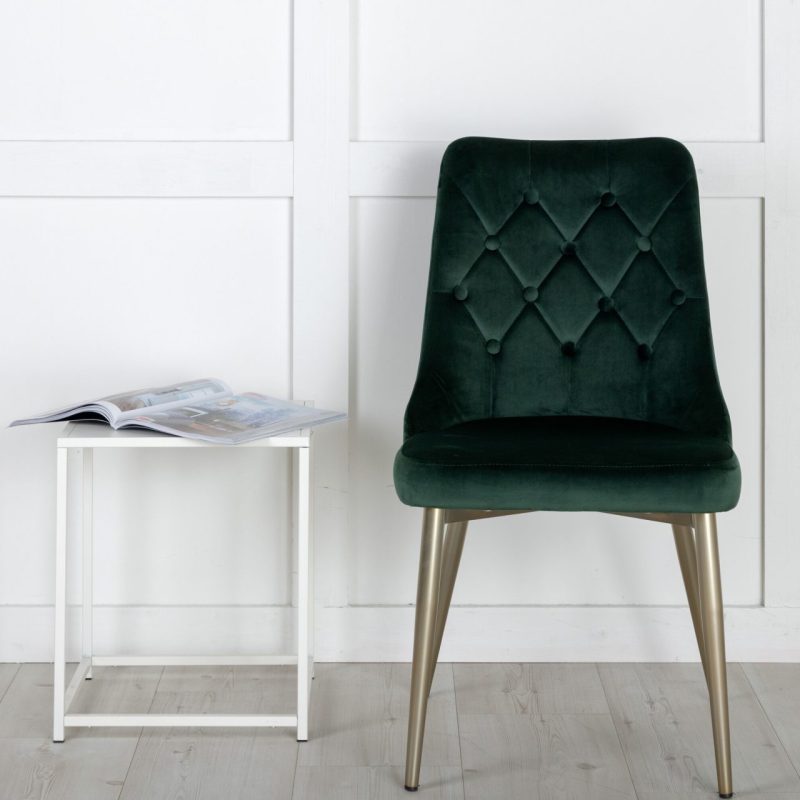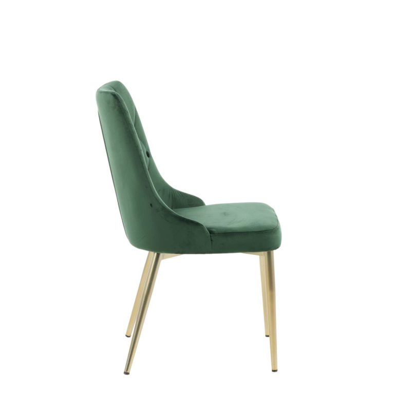 Rikastage oma söögiala luksuslike sametist Lyx söögitoolidega, mis on saadaval 2-osalises komplektis. Need metsrohelised toolid Velvet Luxury kollektsioonist on stiilse disainiga, millel on messingist poleeritud metalljalad, pehme roheline sametpolster, pehme polsterdus ja dekoratiivsed nupud ümardatud seljatoel ja istmel. Nii stiilsed kui nad on mugavad! Nõuab osalist kokkupanekut.
