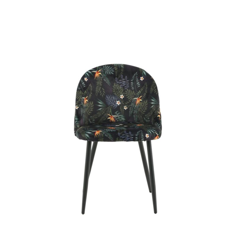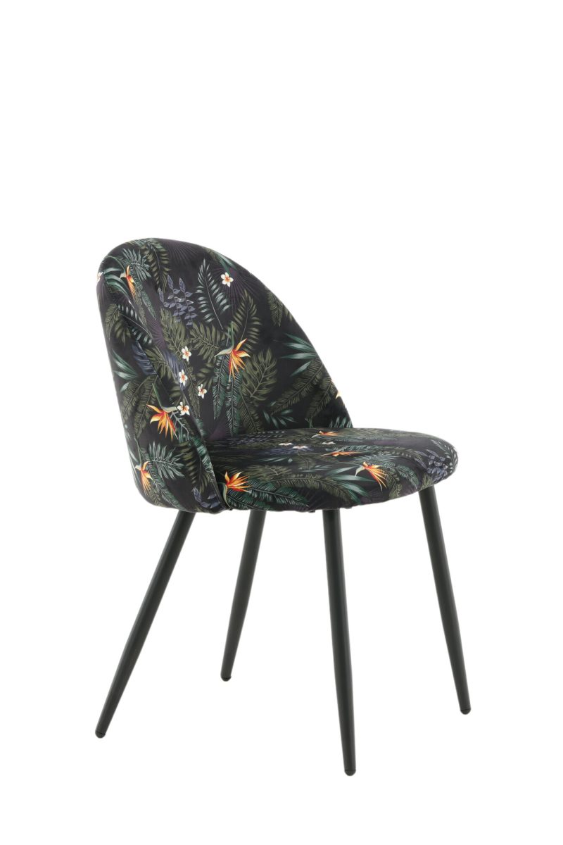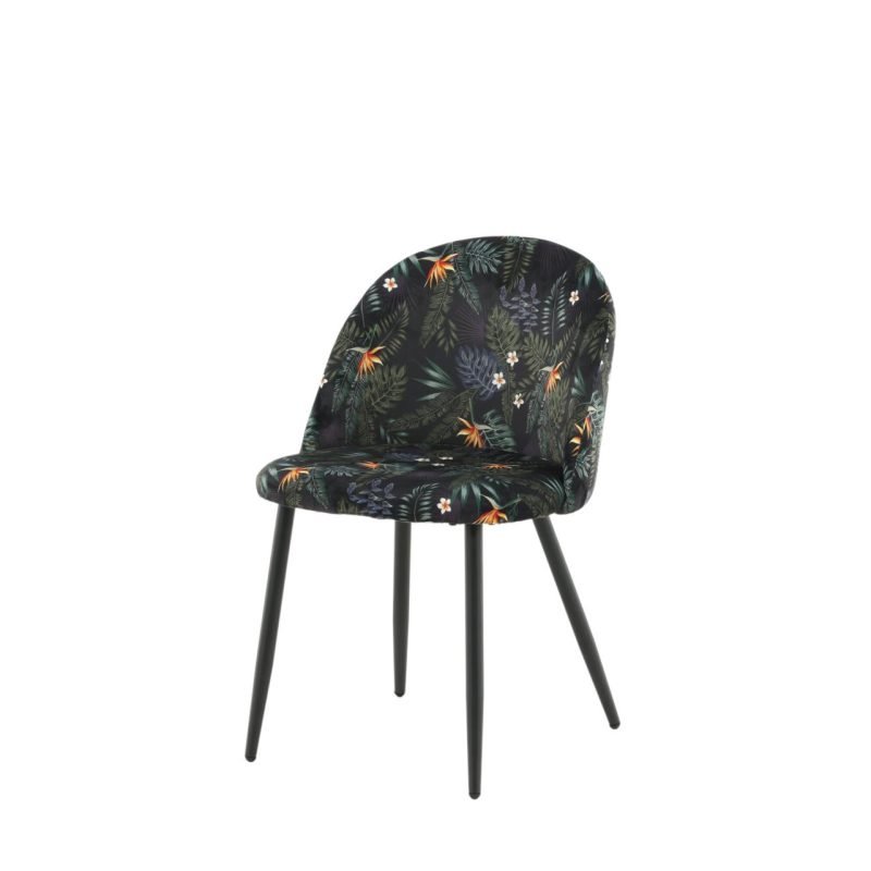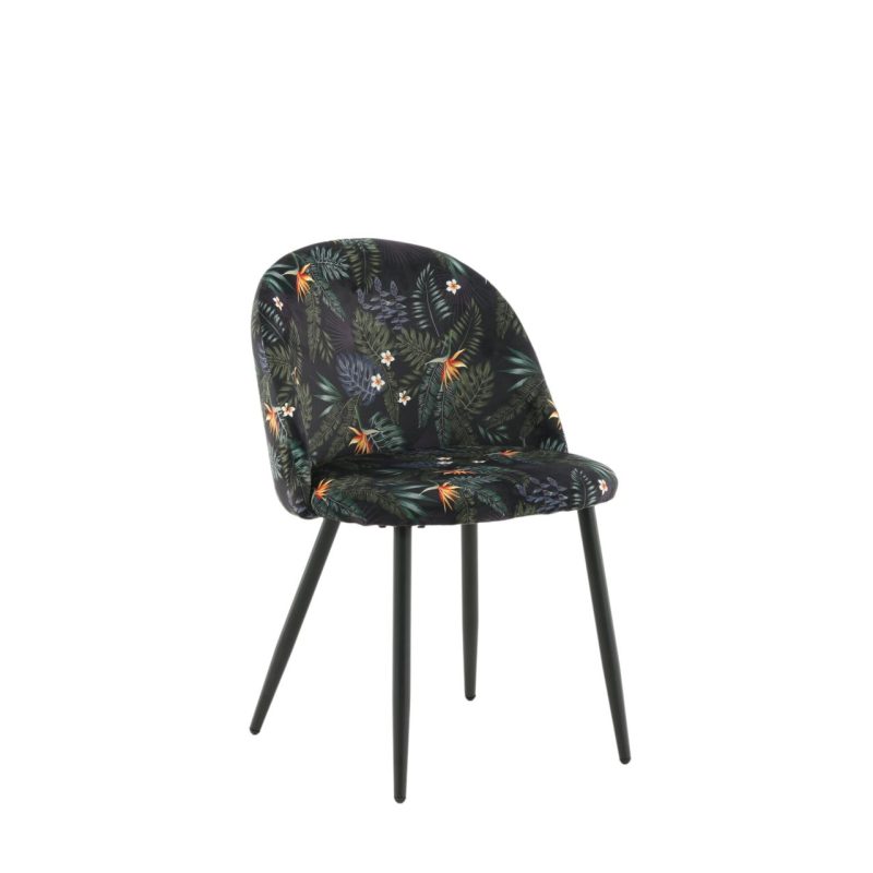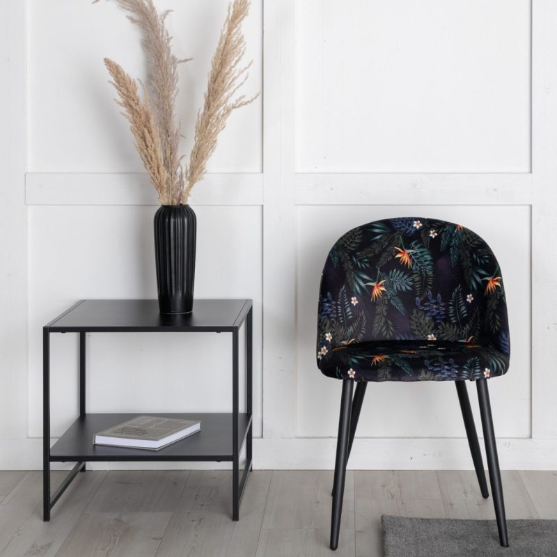 Täiendage oma söögiala Musta Lille Mustriga Sametist Söögitoolide 2-pakiga. Toolidel on musta pulbervärvitud metallraam ja jalad, mida täiendab stiilne ümar tagakülg. Polsterdatud musta lillelise polüestrist sameti kangas lisab teie ruumi isikliku puudutuse. Vajalik on kerge montaaž.