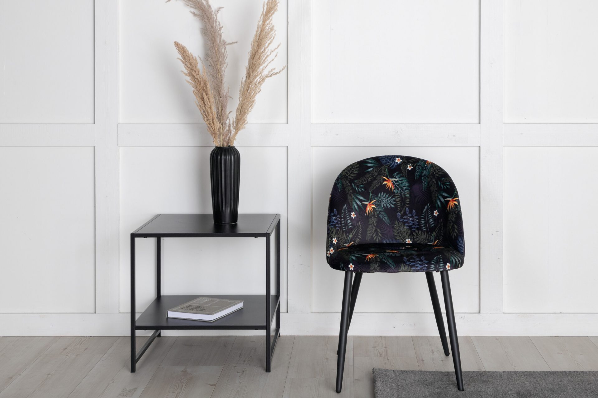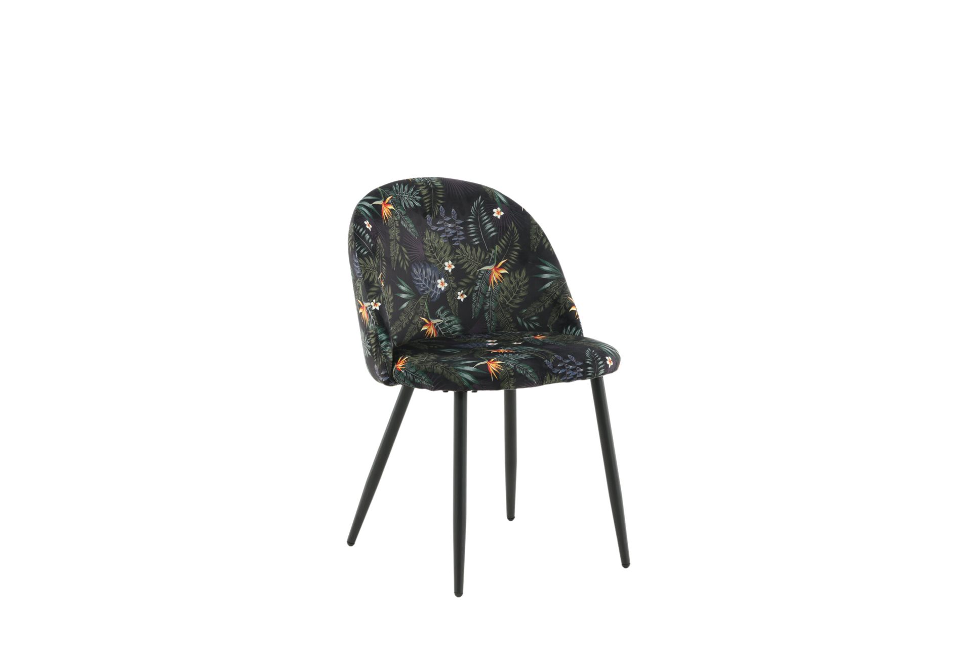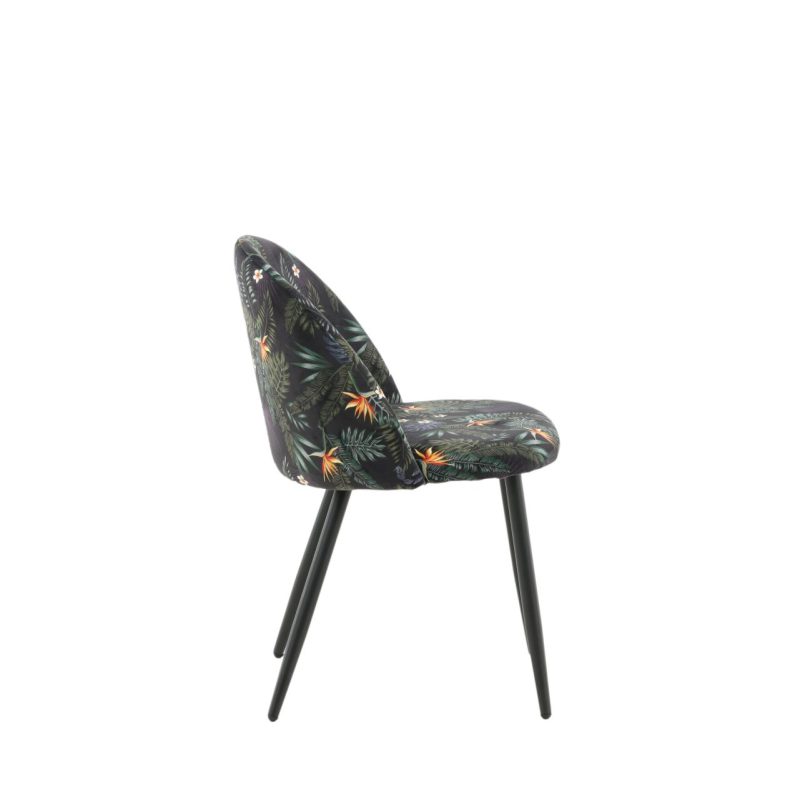 Täiendage oma söögiala Musta Lille Mustriga Sametist Söögitoolide 2-pakiga. Toolidel on musta pulbervärvitud metallraam ja jalad, mida täiendab stiilne ümar tagakülg. Polsterdatud musta lillelise polüestrist sameti kangas lisab teie ruumi isikliku puudutuse. Vajalik on kerge montaaž.