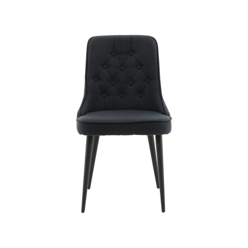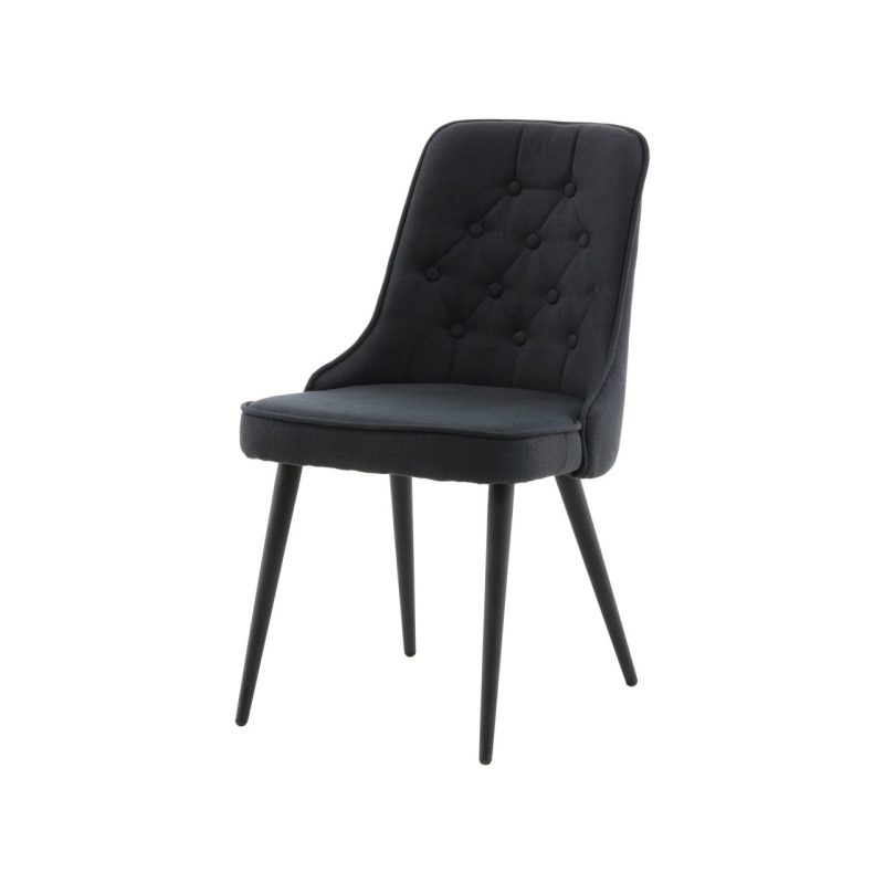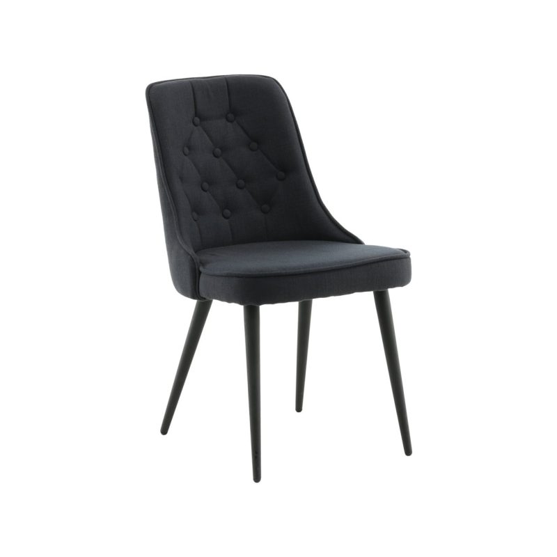 Tõstke oma söögiala esile Velvet Deluxe söögitoolide 2-pakiga. Stiilse nööbidetailide ja dekoratiivse õmblusega mustast polüesterkangast polsterdatud tool õhkab elegantsi. Mustad pulbervärvitud metalljalad lisavad modernset puudet, samal ajal kui pehme polsterdus tagab mugavuse. Ideaalne luksusliku puudutuse lisamiseks teie ruumi. Vajalik on osaline kokkupanek.
