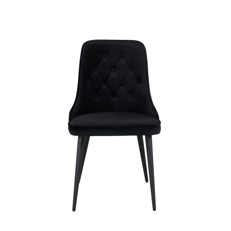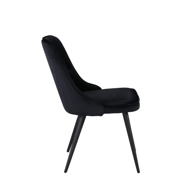 Tõstke oma söögikogemus uuele tasemele Velvet Deluxe söögitooli 2-pakiga, mis on kujundatud Velvet Luxury sarja stiilses täiesti mustas disainis. Peen must velvetkangas nööpidega detailide ja dekoratiivõmblustega seljatoel õhkub elegantsi. Tooli toetavad mustad pulbervärvitud metalljalad ja pehme polsterdus pakub lisamugavust. Kokkupanek on kiire ja lihtne, võimaldades teil stiilselt nautida päeva tipphetke.