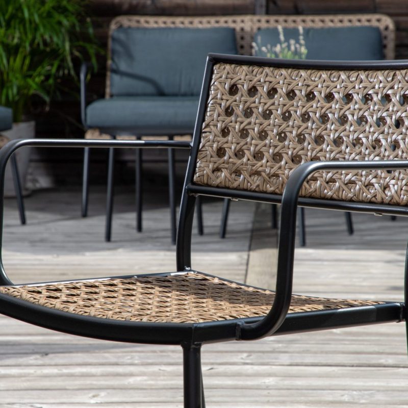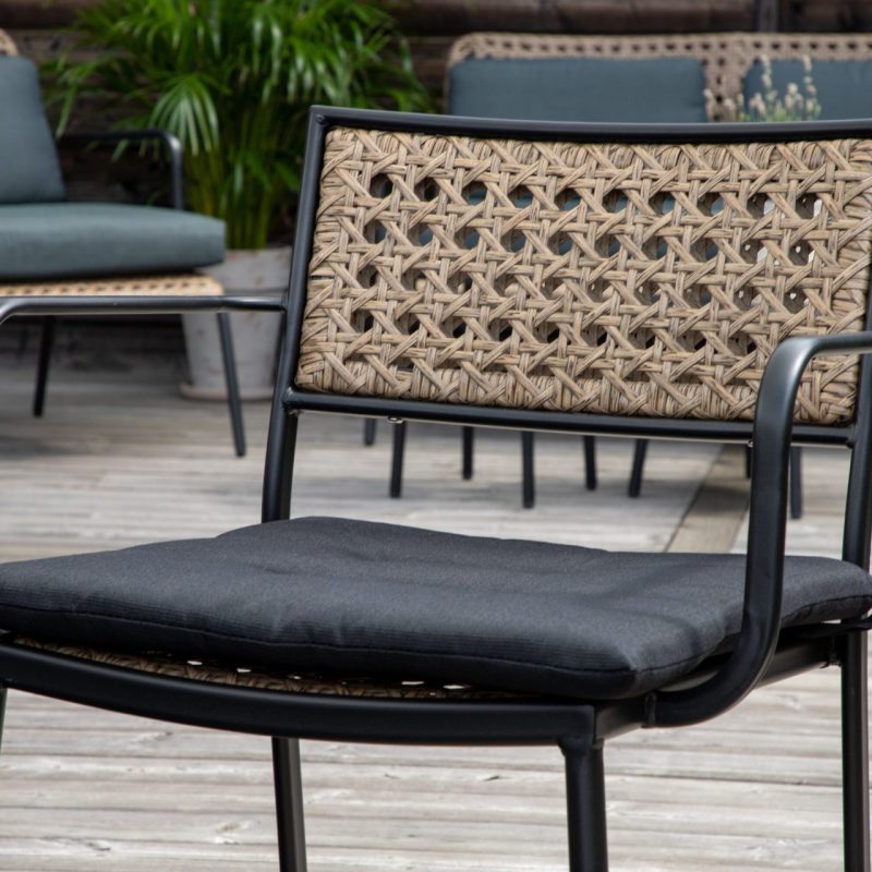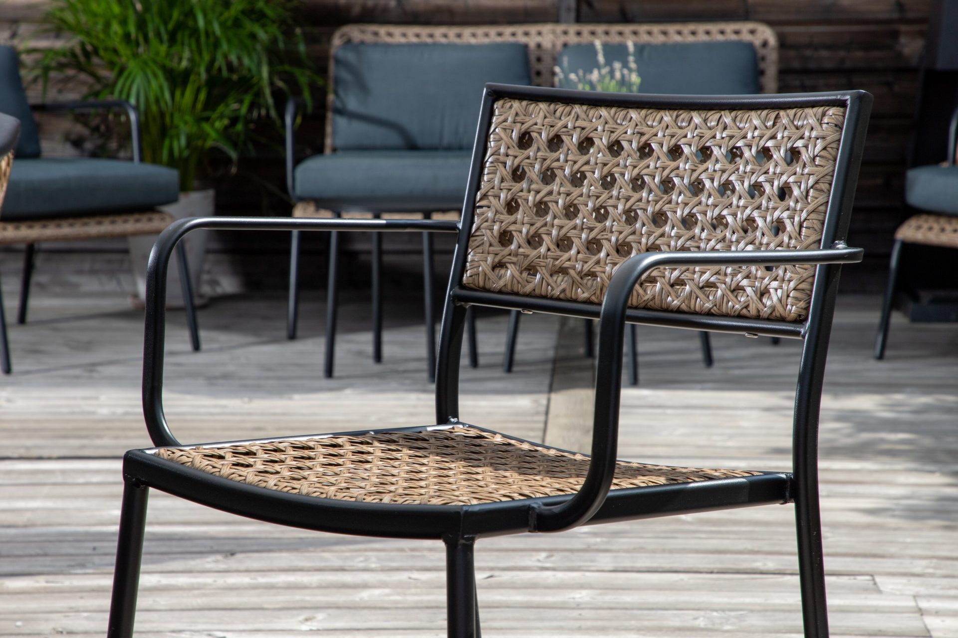 Tutvustame Paola söögitooli 4-pakki, millel on stiilne disain musta terase, loodusliku punutise ja musta padjaga. See tool ühendab dekoratiivsed puitelemendid stiilse musta värviga, luues harmoonilise õhkkonna välitingimustes. Valmistatud vastupidavast Konstrite materjalist, on see UV- ja ilmastikukindel, sobib suurepäraselt välistingimustes kasutamiseks. Kuhjatav disain lisab mugavuse hoiustamiseks.