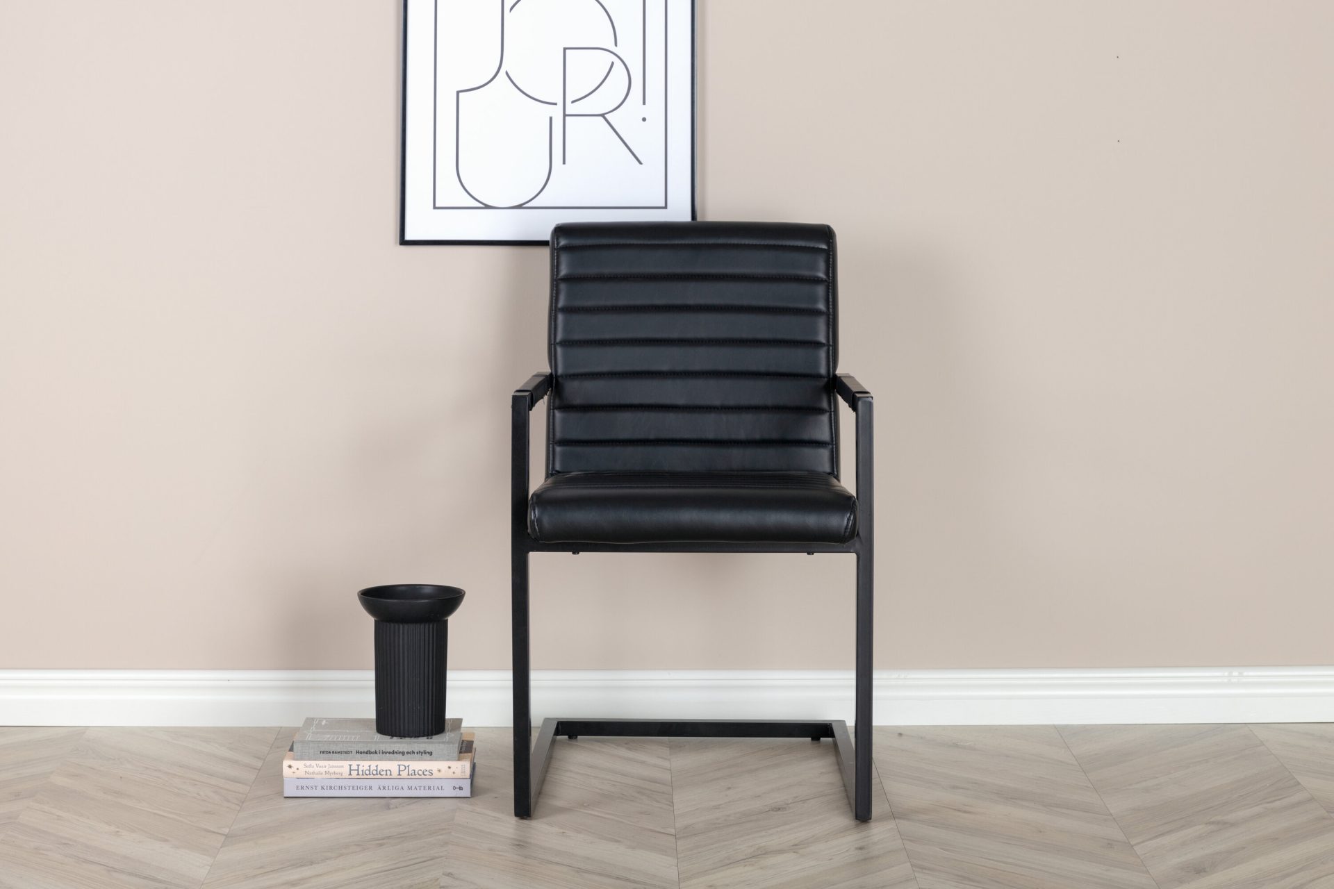 Tutvustame Art Karmstol 2-pakki – Mustad / Mustad PU söögitoolid! Need Art seeria toolid ühendavad endas tööstuslikku stiili ja maalähedast võlu, omades musta pulbervärvitud metallraami, integreeritud käetugesid ning avarat istet ja seljatuge, mis on kaetud musta kunstnahaga, millel on dekoratiivsed õmblused. Kokkupanek on kiire ja lihtne.