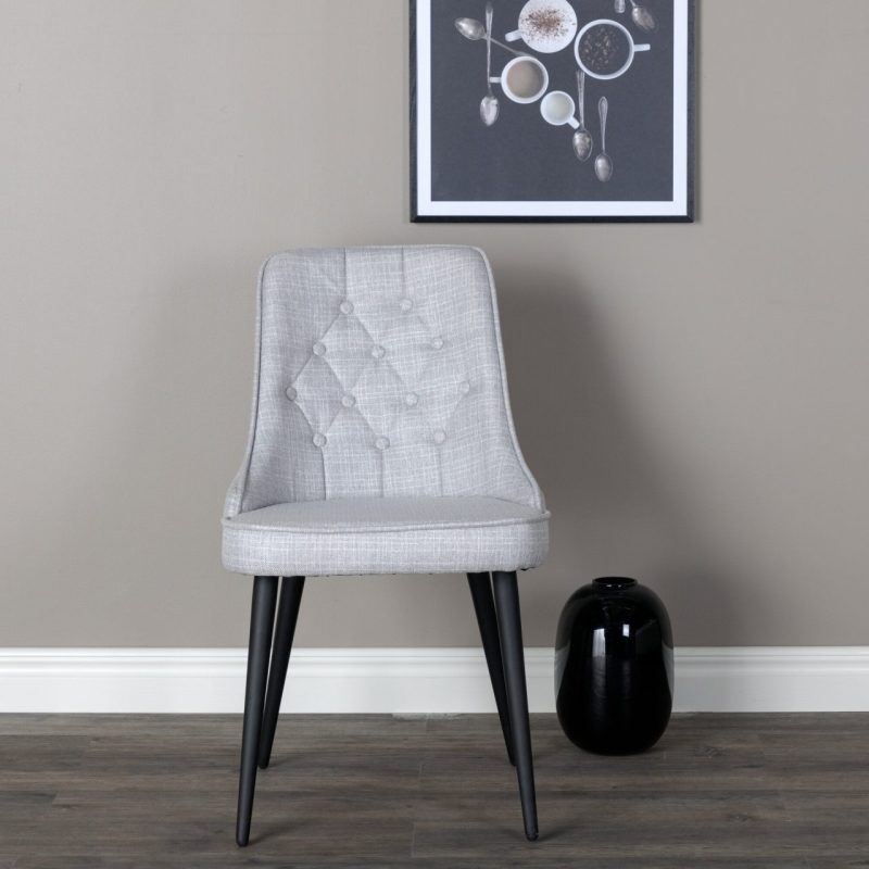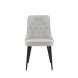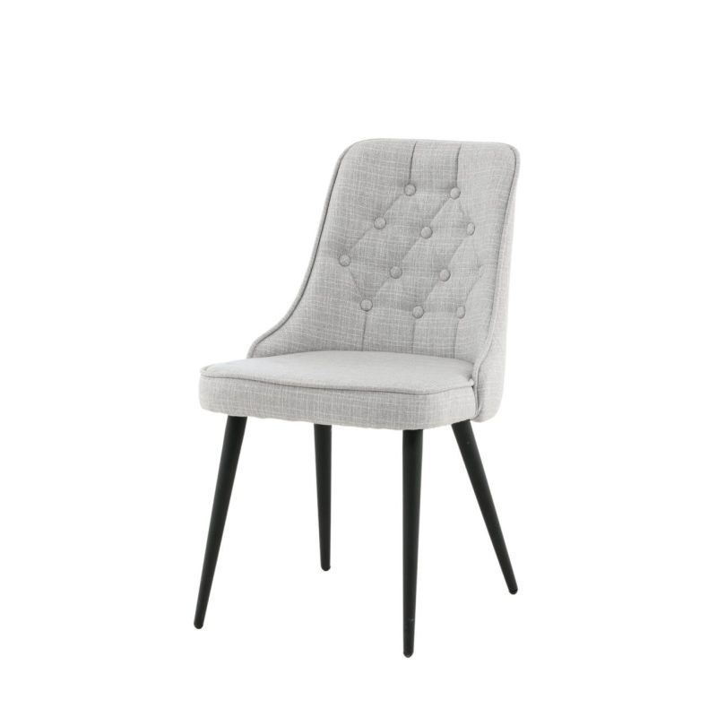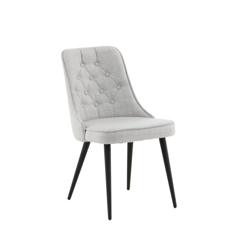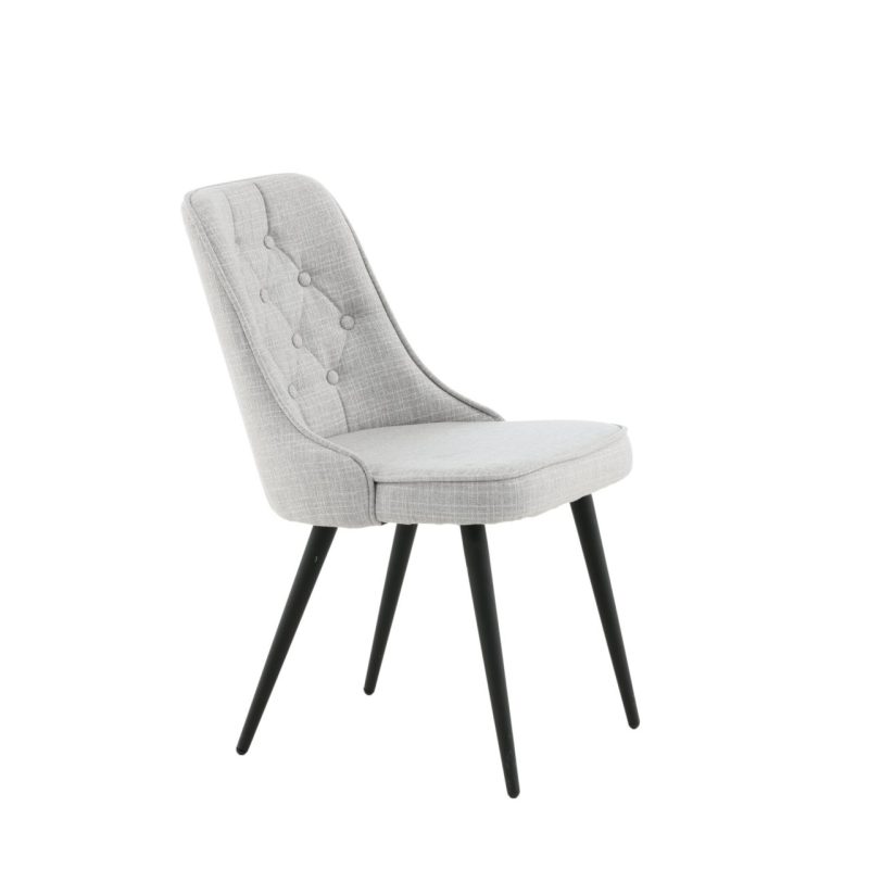 Tutvustame Velvet Deluxe söögitooli 2-pakki, millel on mustad jalad ja heleda hall kangas. See mugav, stiilne ja vastupidav söögitool Velvet Luxury sarjast uhkeldab täielikult riietatud disainiga, millel on peen hall polüesterkangas, nööbid ja dekoratiivne õmblus tagaküljel, mis lisab keerukat puudutust. Tooli toetavad musta pulbervärviga metalljalad ja pakub pehmet polsterdust seljatoel ja istmel mugavuse suurendamiseks. Kerge kokkupanek on vajalik, et luua luksuslik fookuspunkt teie elutoas.