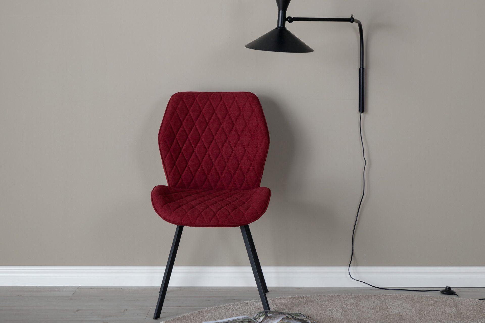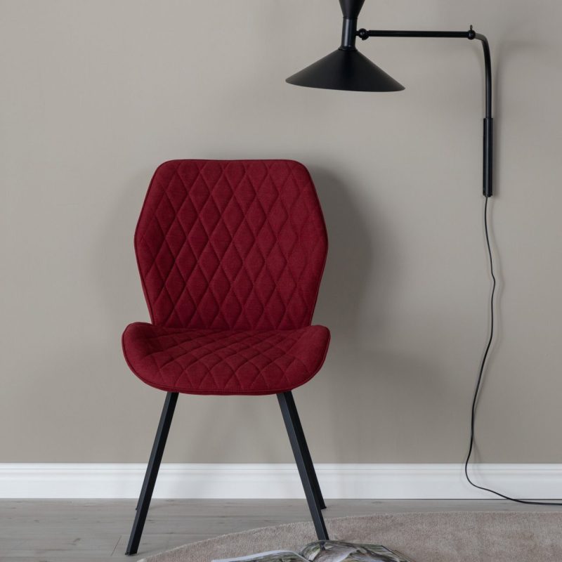 Tutvustame Gemma söögitooli 2-pakki mustade jalgade ja punase kangaga! Tõstke oma söögikogemus uuele tasemele selle stiilse ja praktilise tooliga. Eksklusiivne disain sisaldab musta pulbervärvitud metalljalgasid ja mugavat kauss-kujulist istet ja seljatuge tumepunases polüestrist kangas. Dekoratiivne õmblusdetail lisab elegantsi. Kokkupanek on kiire ja lihtne, nii et saate nautida oma uusi toole kohe.