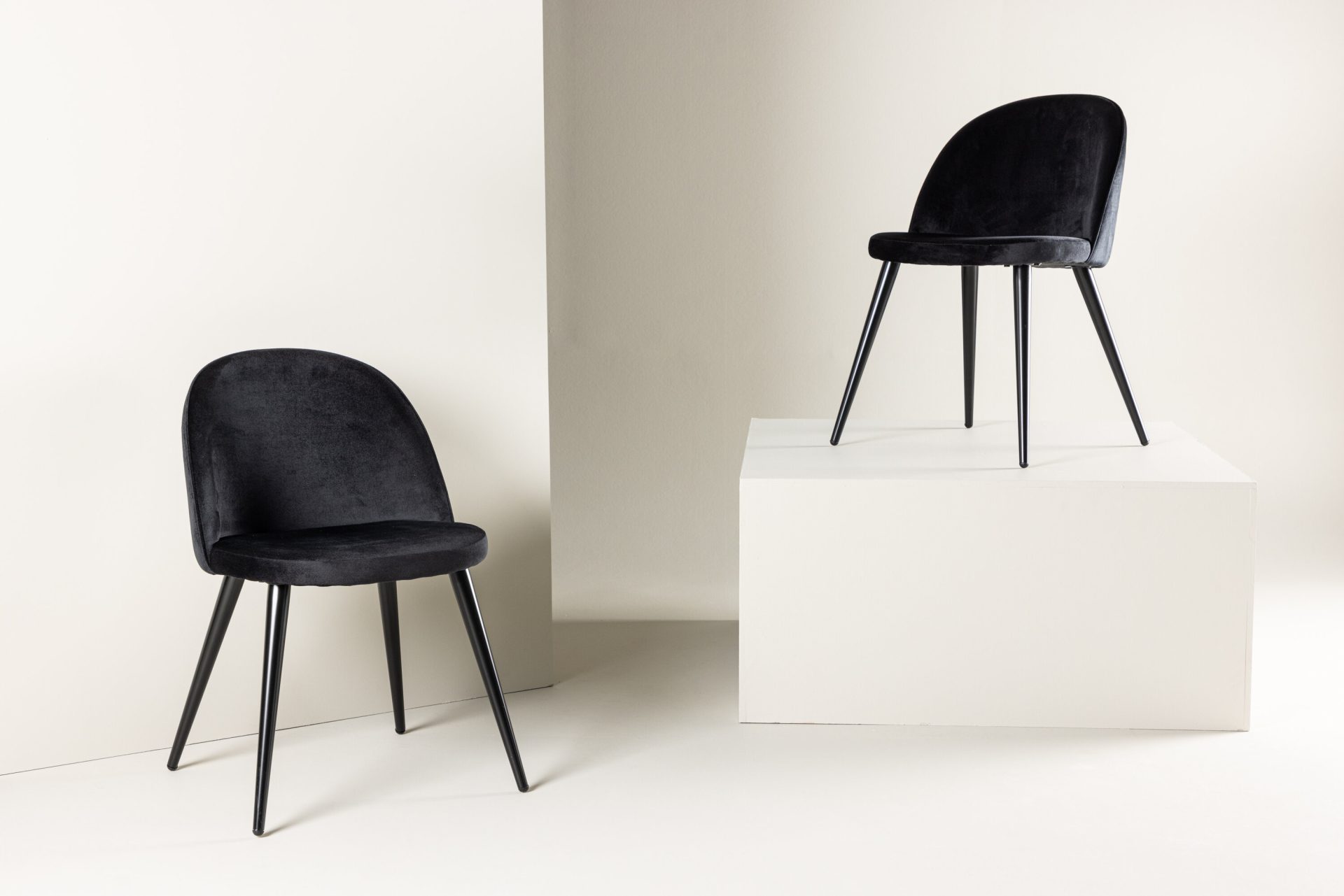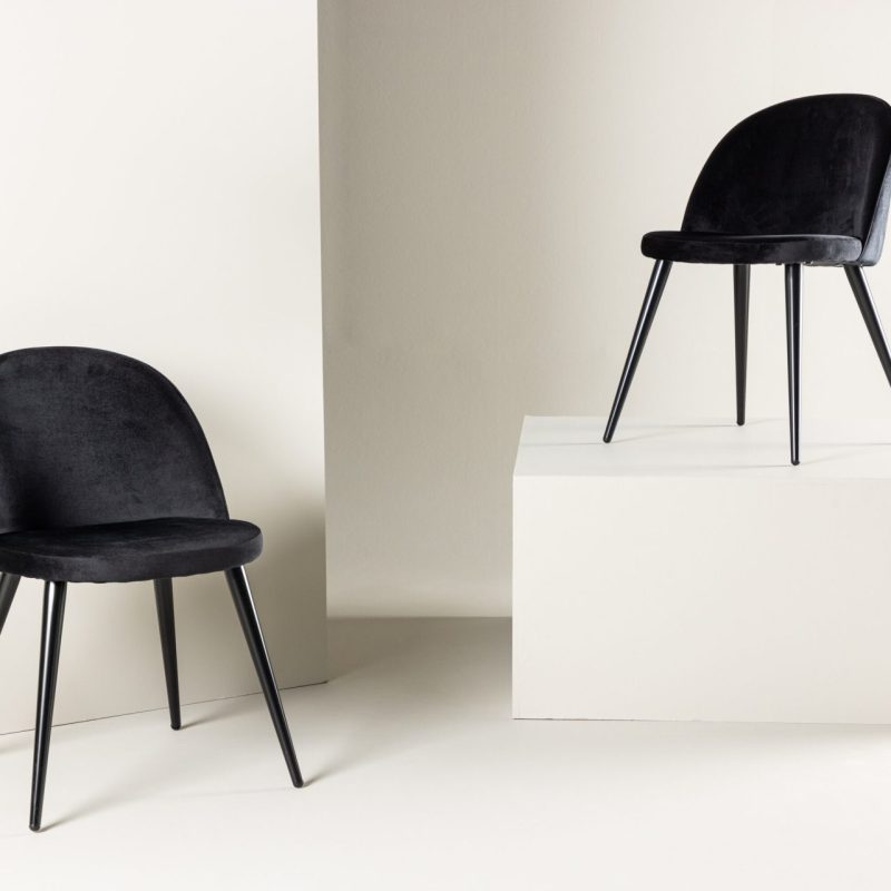 Tutvustame Velvet söögitooli 2-pakki mustas sametis. See stiilne tool on kaasaegse disainiga, millel on ümar seljatugi ja iste, pehme polsterdus ning mustad pulbervärvitud metalljalad. Kogege ideaalset mugavuse ja stiili kombinatsiooni oma söögitoa jaoks. Vajalik on kerge kokkupanek.