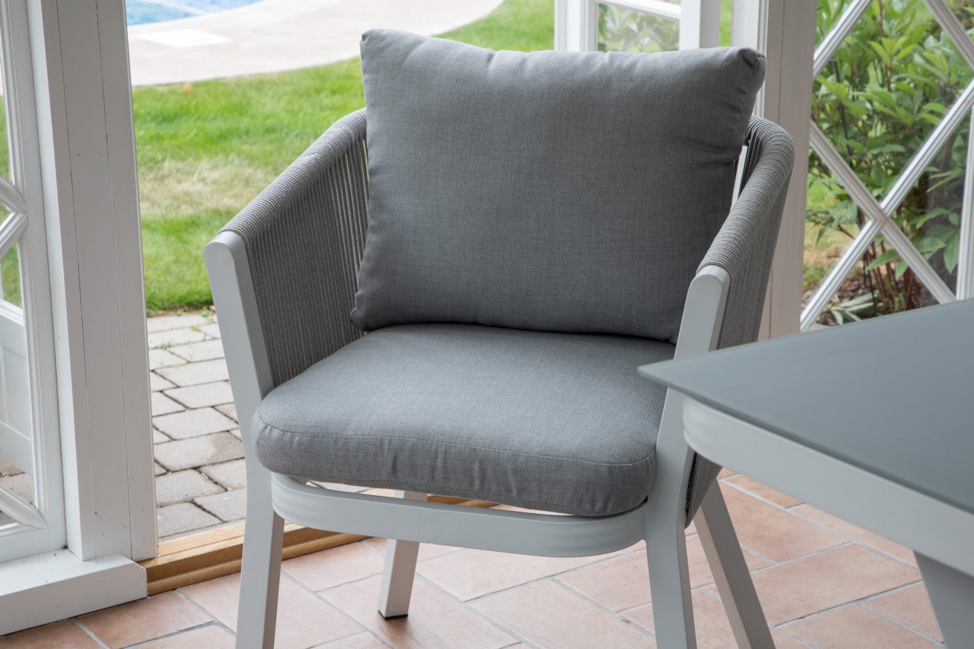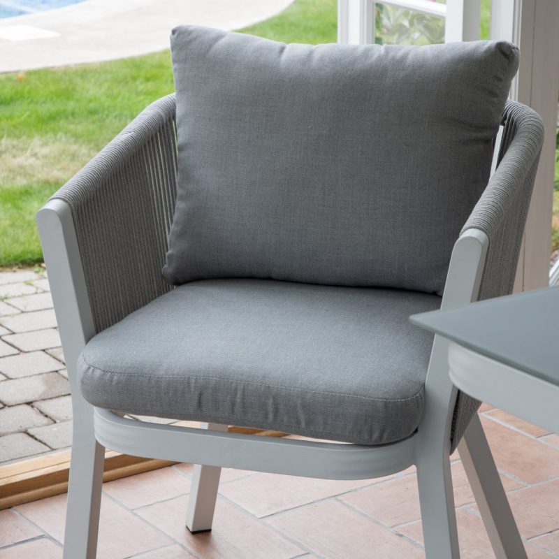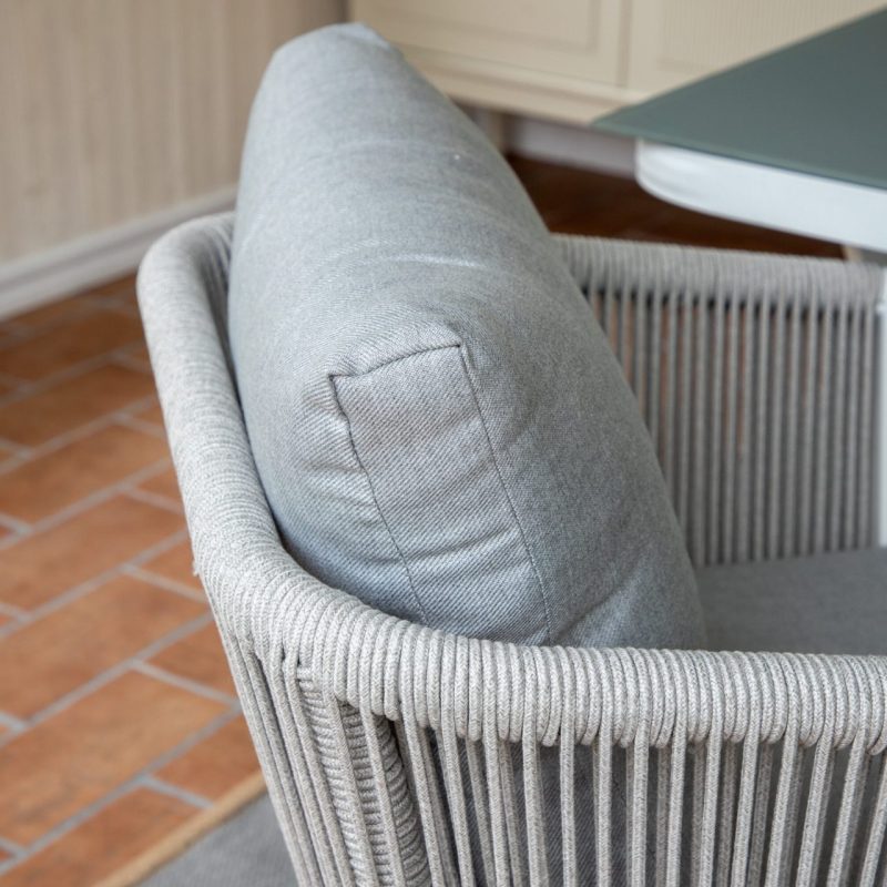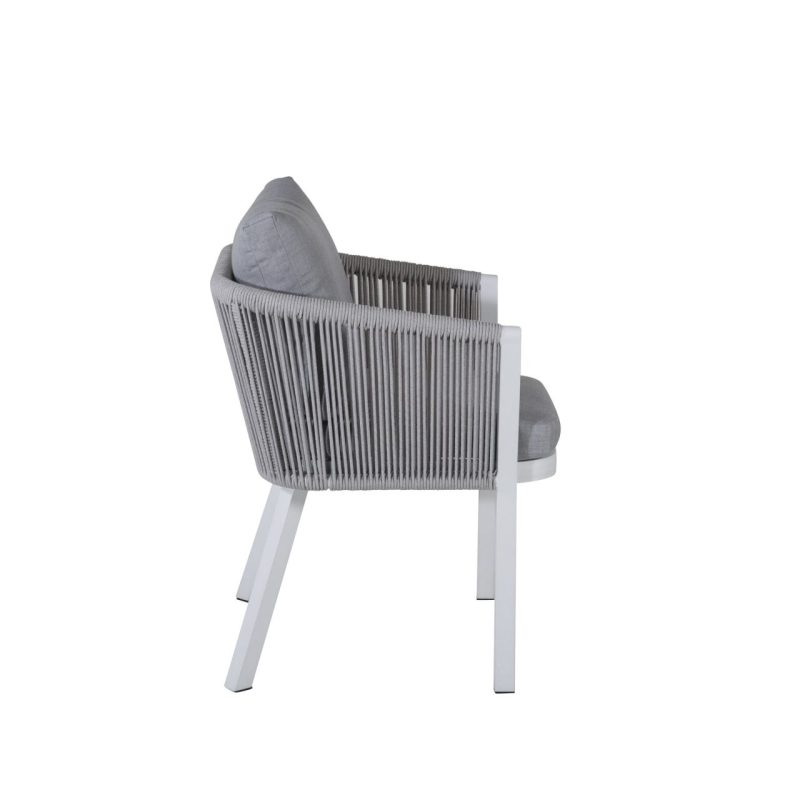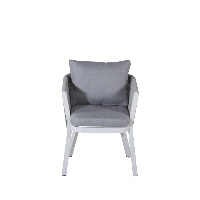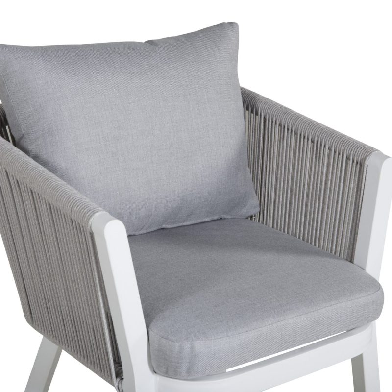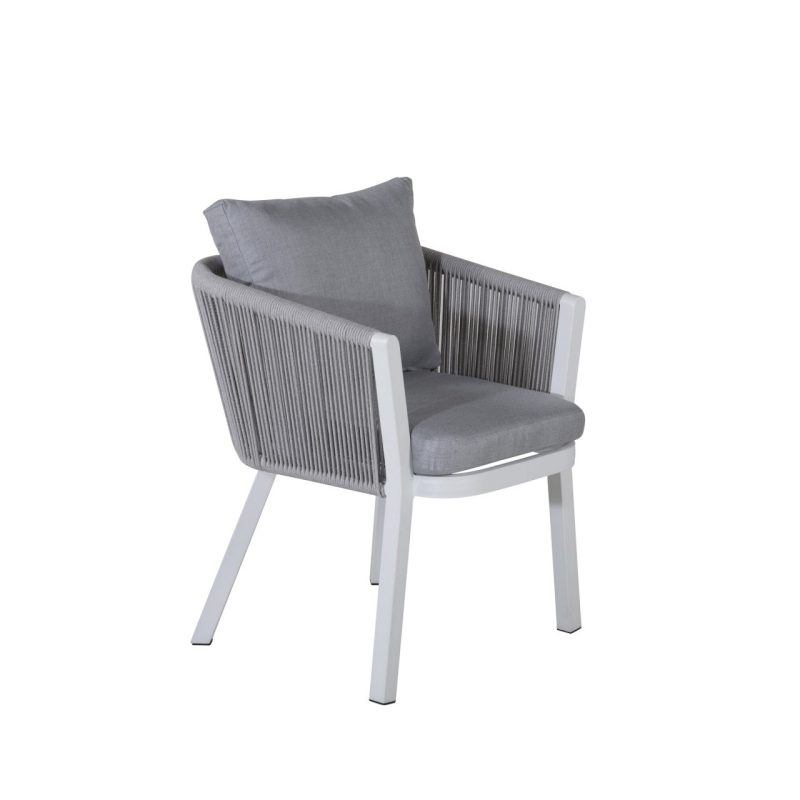 Tutvustame Virya söögitoolide 2-pakki valges alumiiniumis halli padjaga. Tõstke oma väljas söömise kogemust nende stiilsete ja kutsuvate toolidega. Peened detailid ja korvilaadne disain lisavad elegantsust, muutes need ideaalseks pikemateks õhtusöökideks või hubasteks nurkadeks.