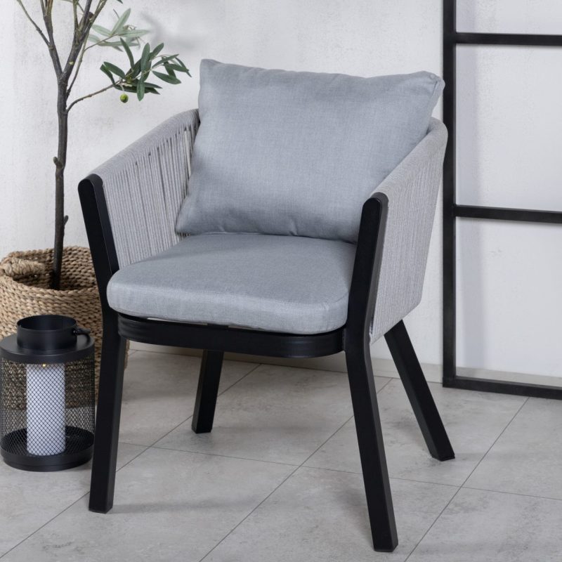 Tutvustame Virya söögitooli 2-pakki MUSTAS alumiiniumis hallide patjadega. Tõstke oma välistingimustes söömise kogemust selle stiilse tooliga, millel on korvilaadne disain ja peened detailid. Ideaalne pikkadeks õhtusöökideks või hubasteks nurkadeks, Virya tool on nii kutsuv kui ka praktiline.