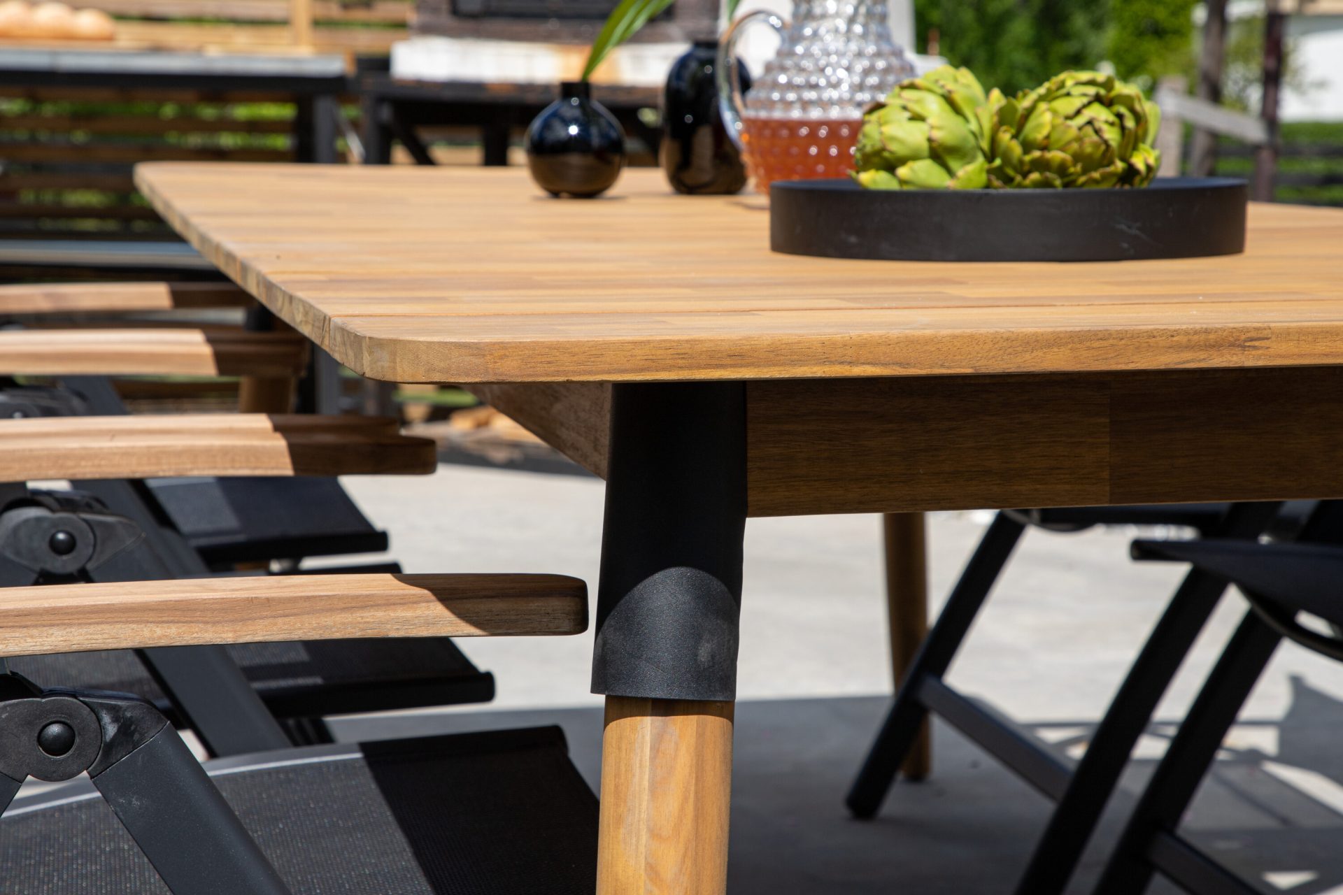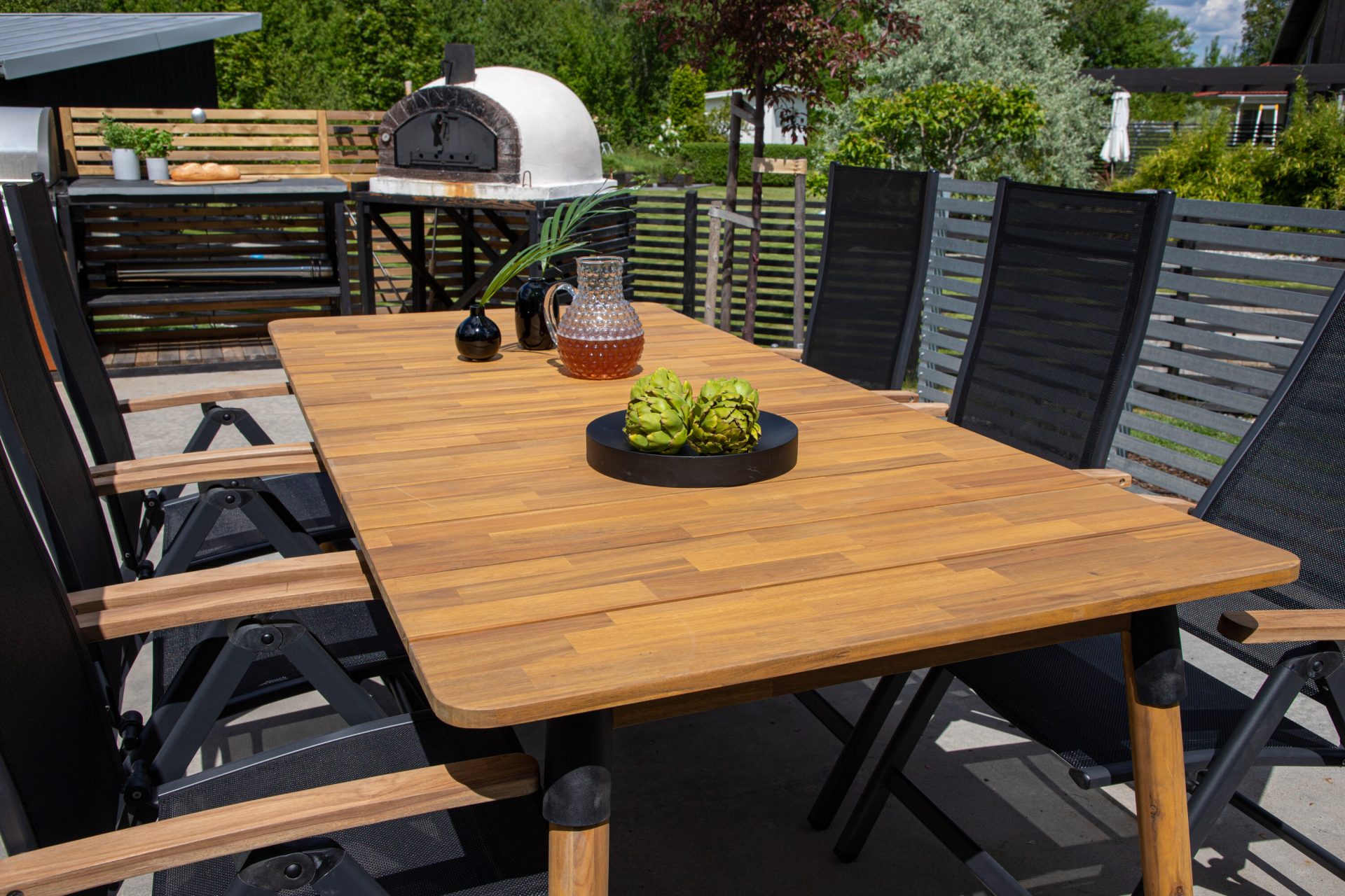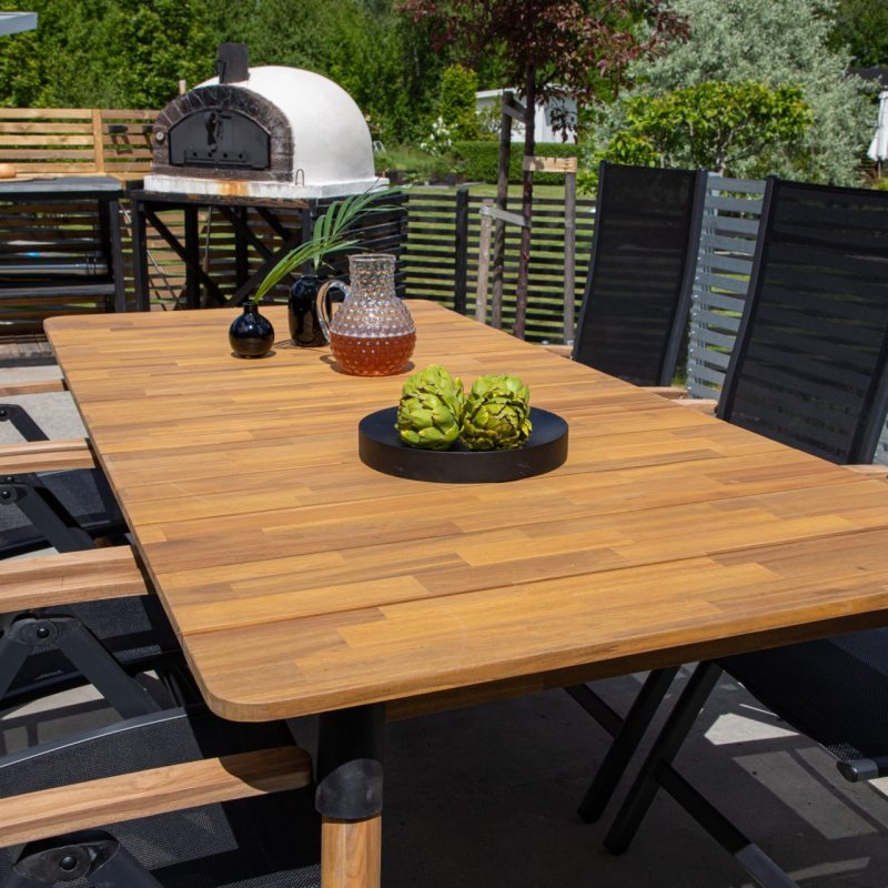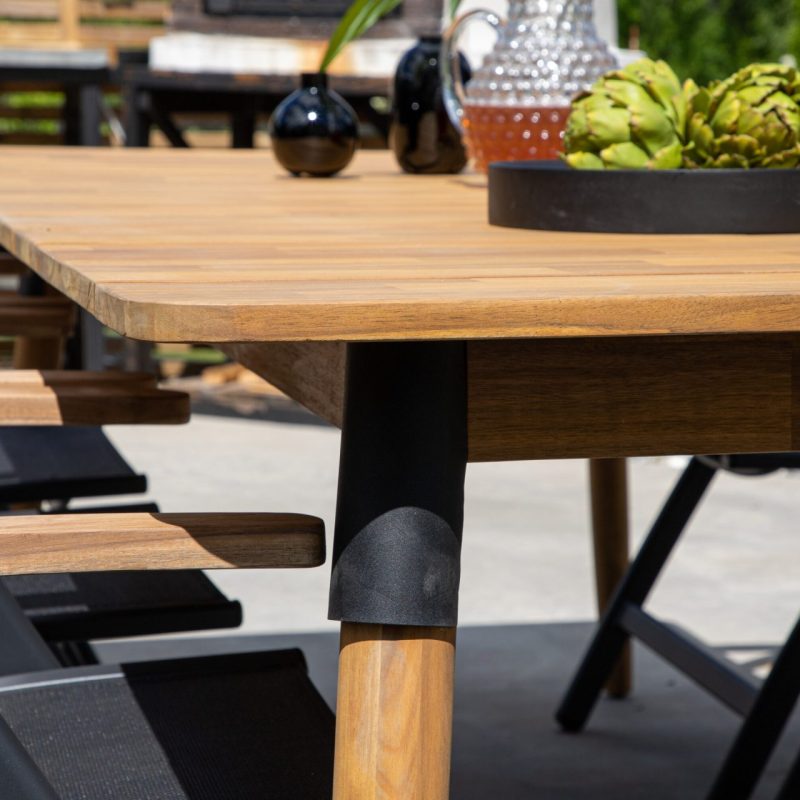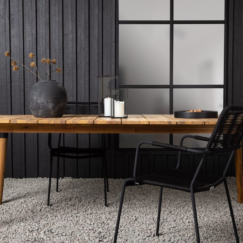 Tutvustame Juliani söögilauda, mis on valmistatud pruunist akaatsiapuidust ja millel on stiilsed mustad aktsendid, et lisada veidi peenetust. See avar 210*100cm suurune ristkülikukujuline laud on ideaalne suurte kogunemiste korraldamiseks õues. Pakkuge oma lähedastele meeldejäävaid söögikogemusi selle elegantse esemega.