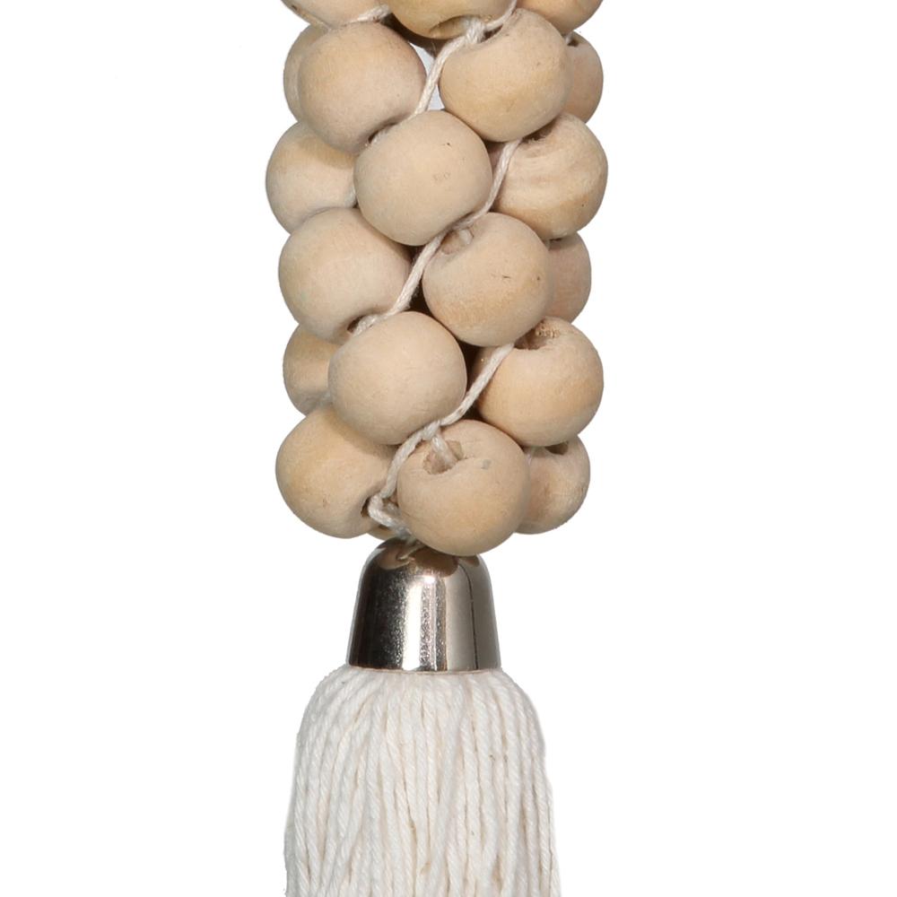 See puuvillast ja puidust helmestega käsitööna valmistatud võtmehoidja lisab sinu kodu või isiklikele esemetele loomuliku ja elegantse aktsendi. Riputa see seinanagile, ukse käepidemele või kardinasse ning too ruumi boheemlaslikku stiili. See unikaalne ja praktiline aksessuaar on suurepärane kingiidee igale stiiliarmastajale.