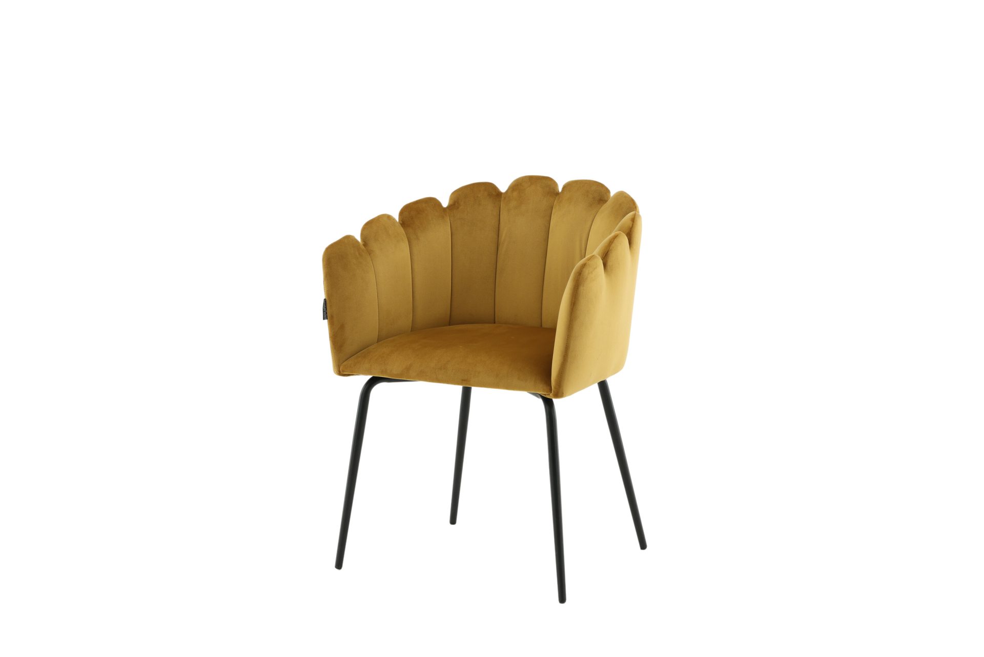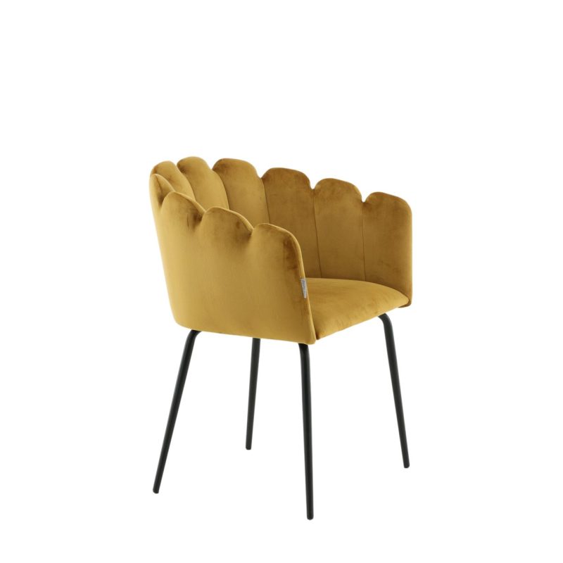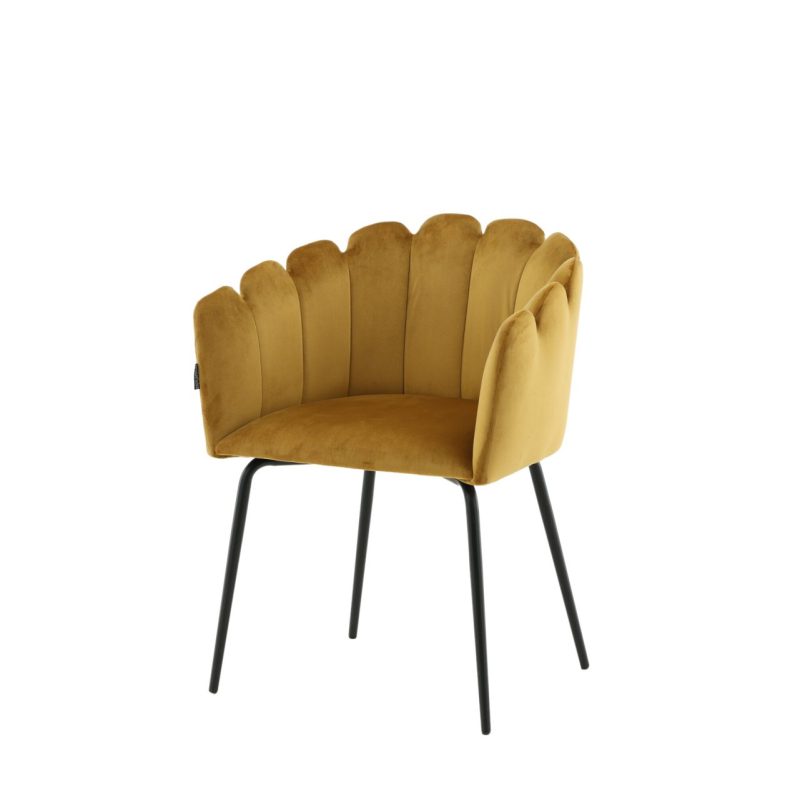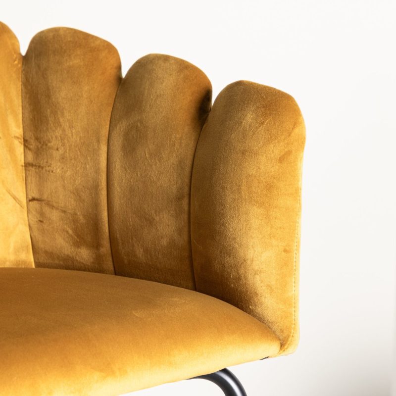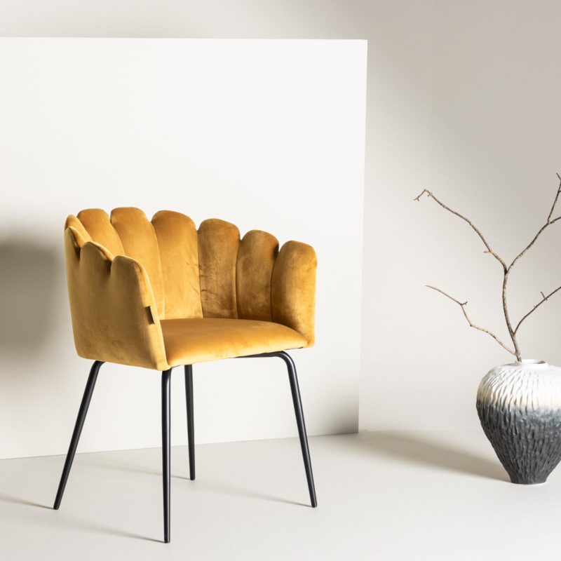 Tõsta oma sisekujundust Limhamni Käetooliga erksas kollases sametkangas. See modernne söögitool on varustatud kestakujulise seljatoega, dekoratiivsete õmblustega ja mustade pulbervärvitud metalljalgadega. Ideaalne hubase fookuspunkti loomiseks teie kodus. Vajab osalist kokkupanekut.