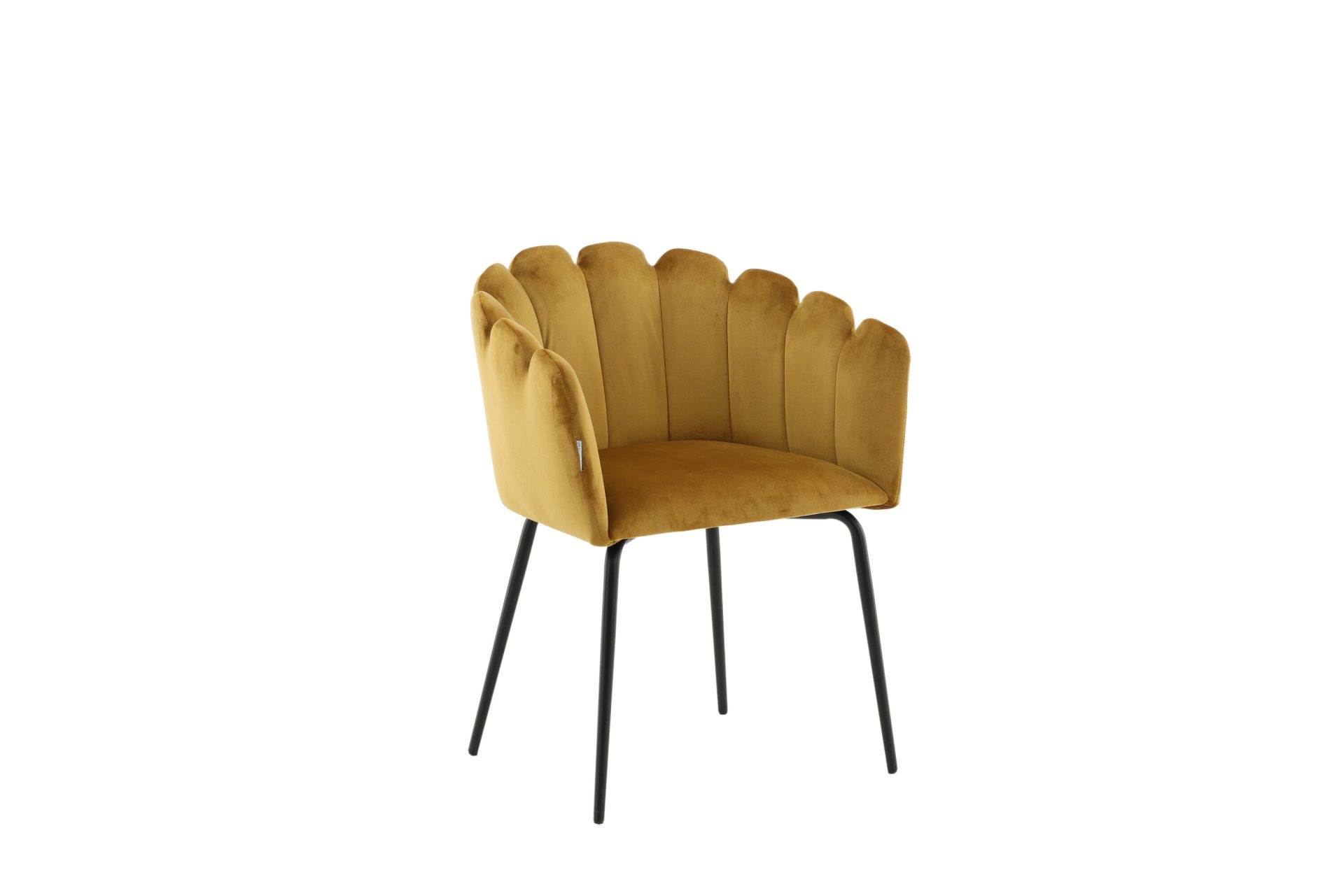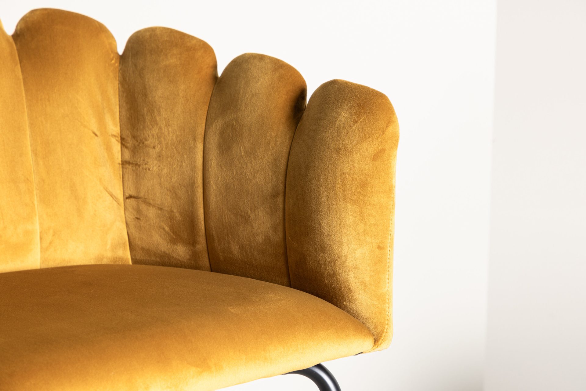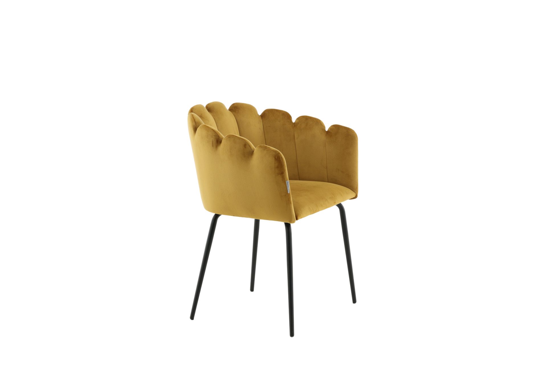 Tõsta oma sisekujundust Limhamni Käetooliga erksas kollases sametkangas. See modernne söögitool on varustatud kestakujulise seljatoega, dekoratiivsete õmblustega ja mustade pulbervärvitud metalljalgadega. Ideaalne hubase fookuspunkti loomiseks teie kodus. Vajab osalist kokkupanekut.