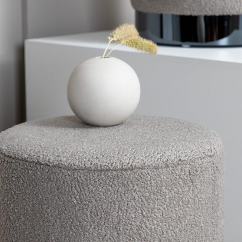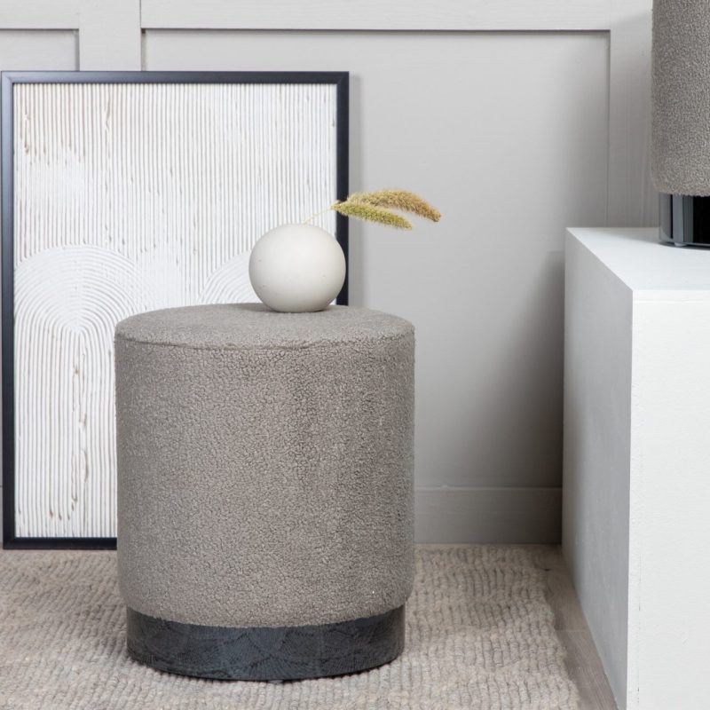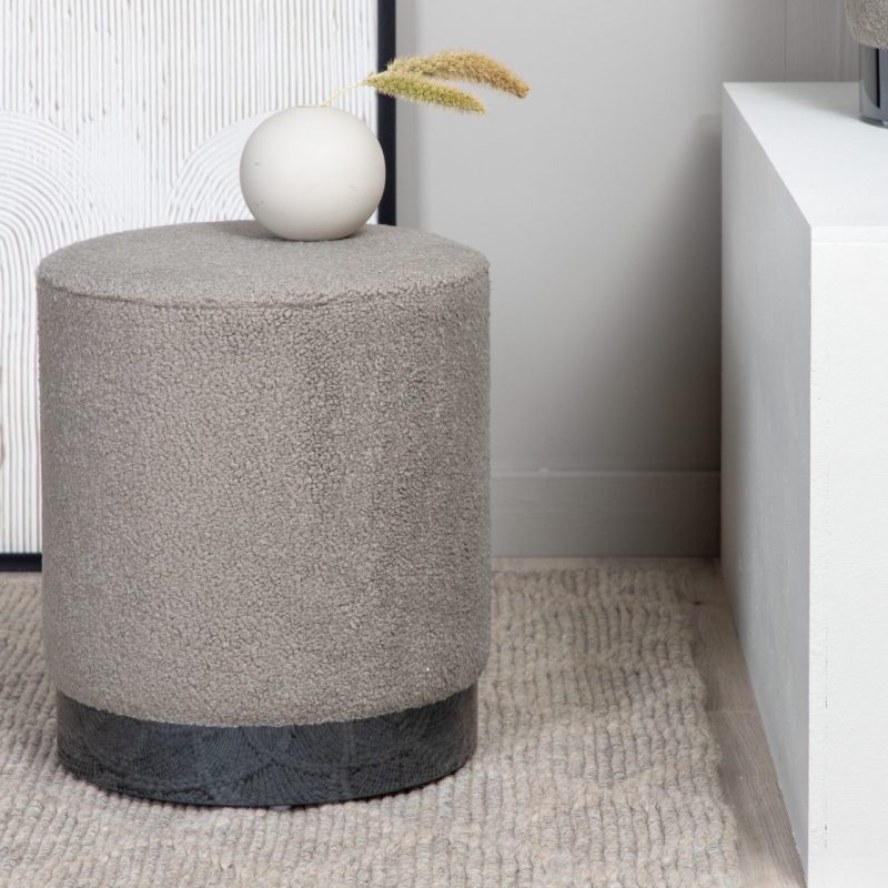 Tutvustame trendikas hall Teddy kangaga Benji puhvetit! See stiilne jalatugi on pehme silindrilise disainiga ja musta metallist alusega dekoratiivseks puudutuseks. Ideaalne jalgade puhkamiseks, lisatooliks või šiki dekoratsioonielemendina. Valmistatud vahust, puuvillakiust, Teddy kangast, painutatud puidust ja terasest. Mõõtmed: Kõrgus: 42,5 cm, Läbimõõt: 35 cm.