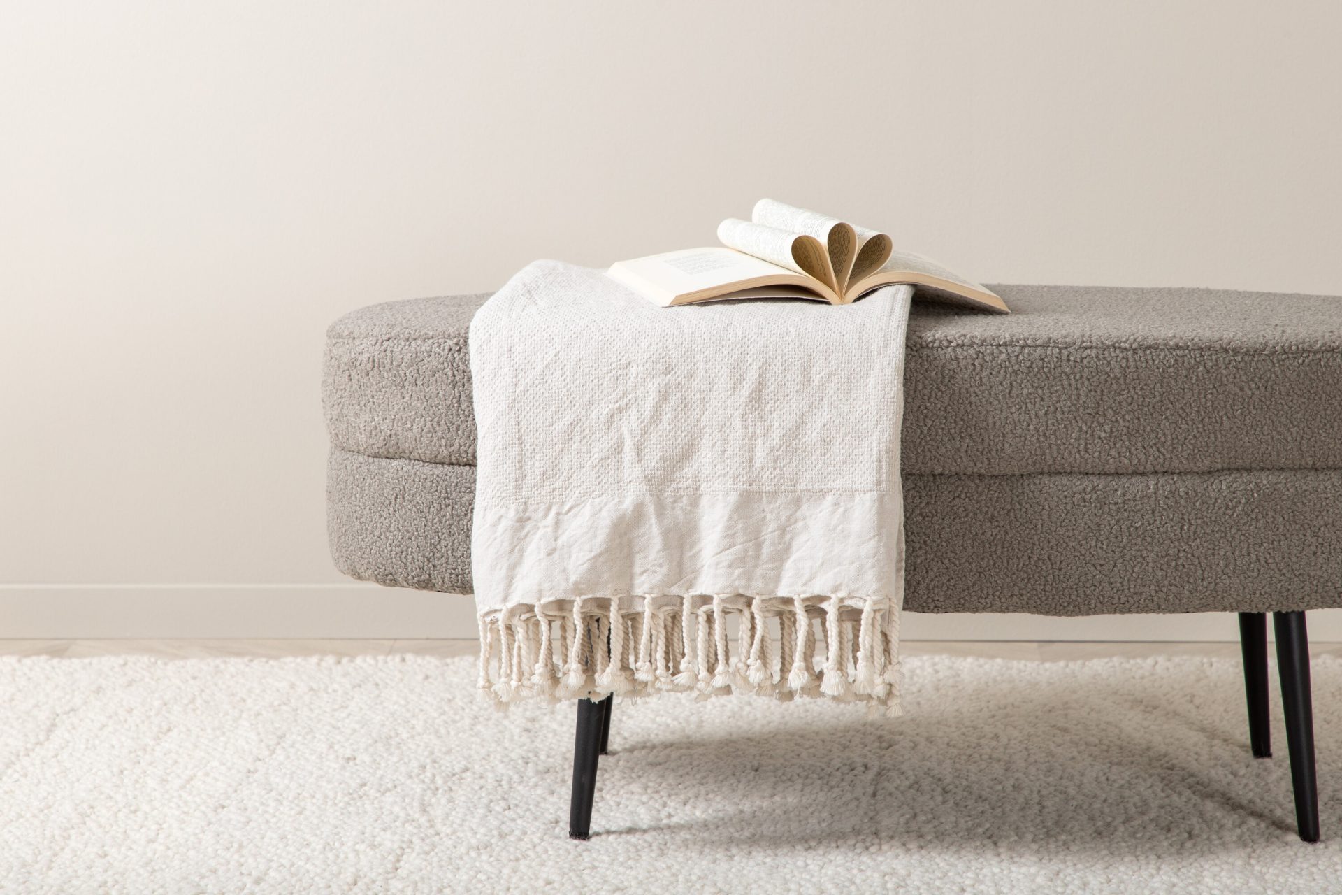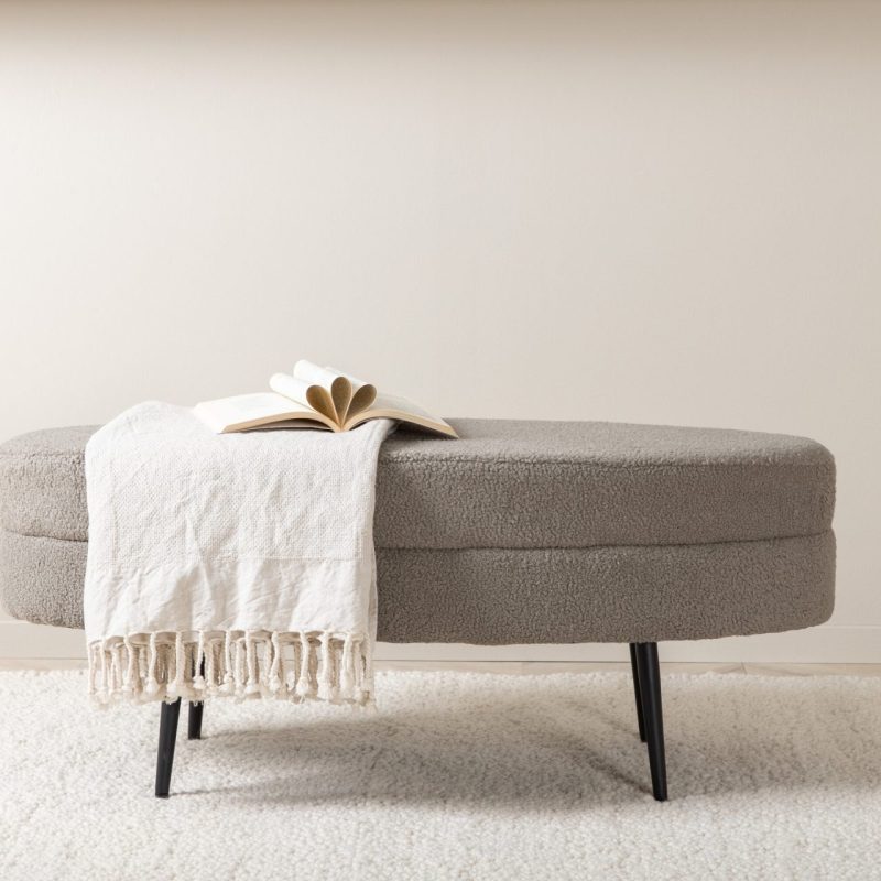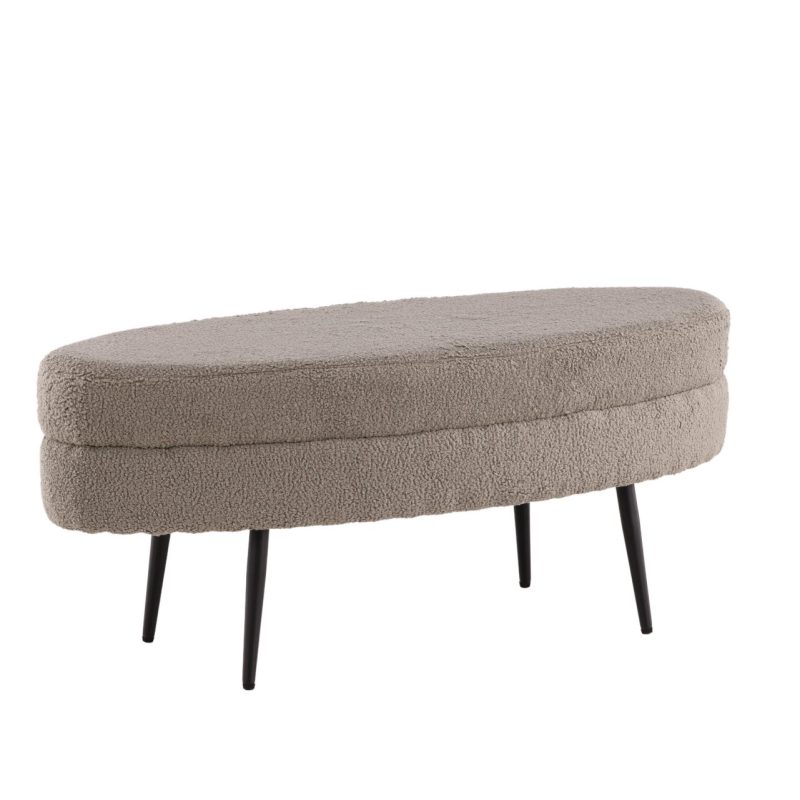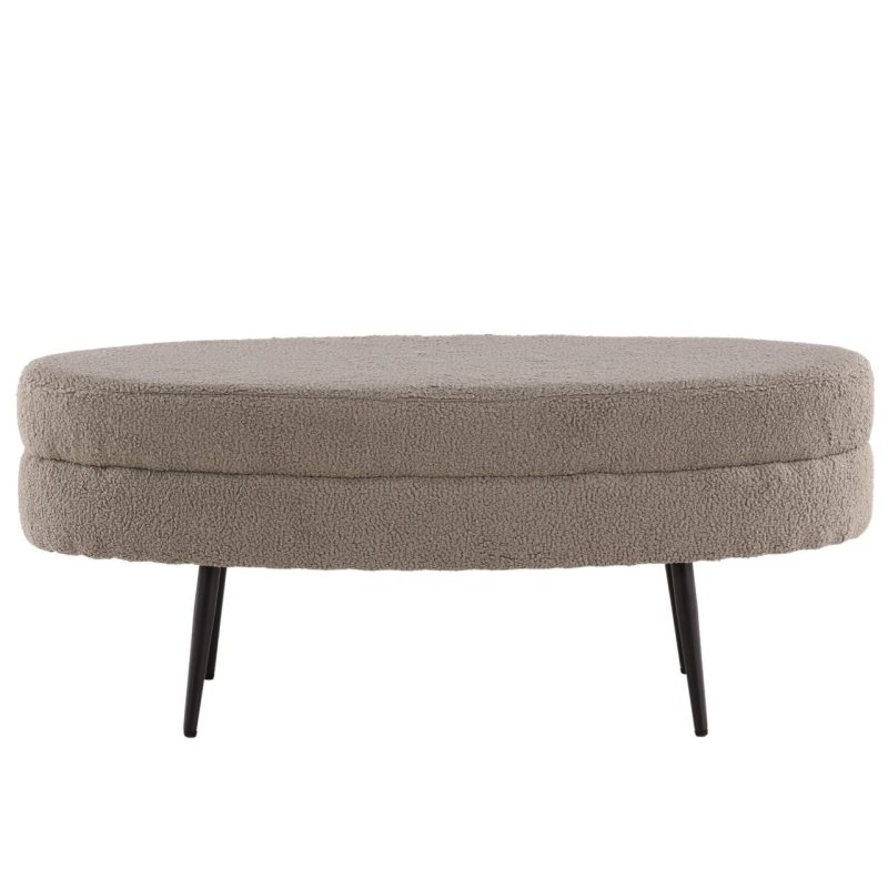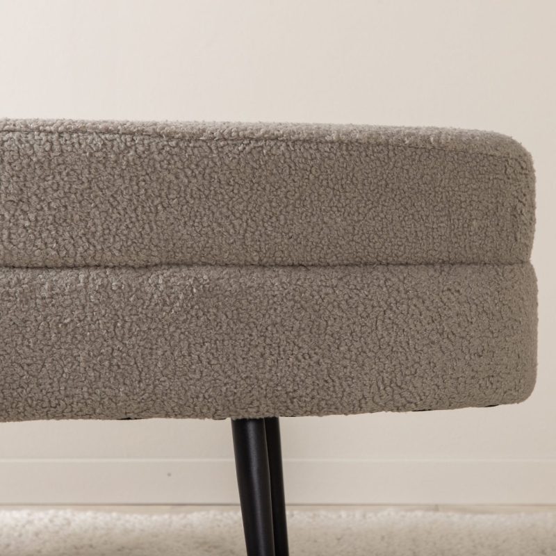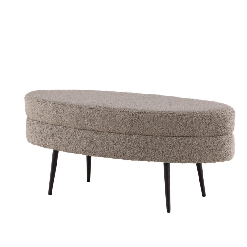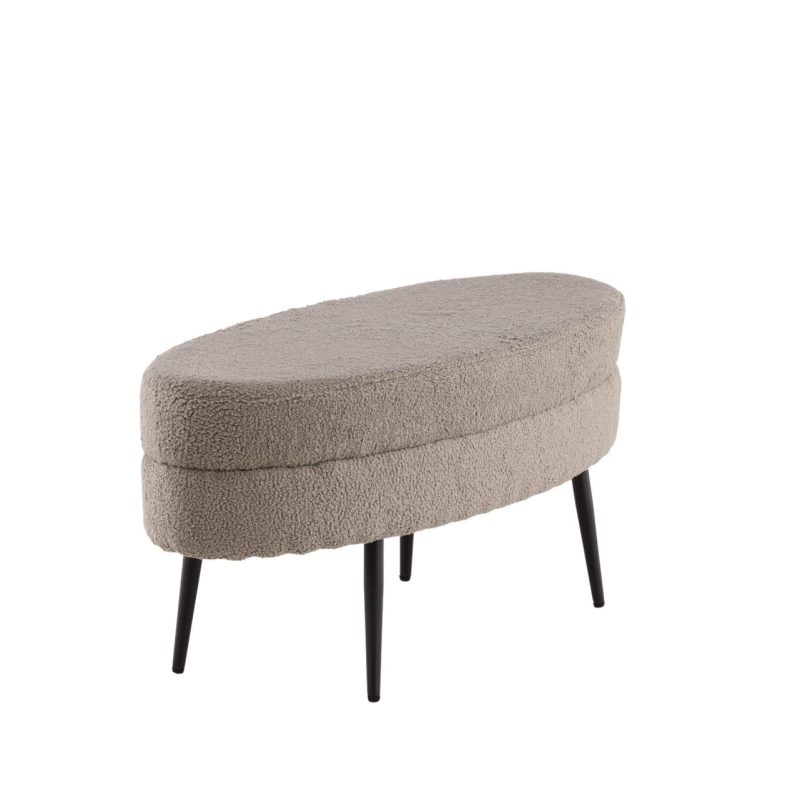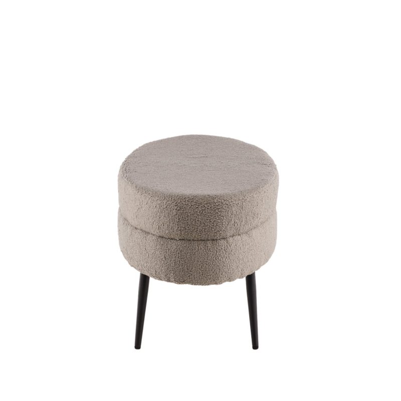 Tutvustame Otto Poufi, stiilset lisandit teie elutoa sisustusele. See trendikas iste Otto seeriast on kaasaegse ovaalse disainiga, mõnusas hallikas-beežis värvitoonis ja trendikas teddy kangaga. Valmistatud vahust, puuvillakiust, kangast ja painutatud puidust, õhkub see soojuse ja hubasuse. Mustad terasjalad lisavad tükile elegantsi ja õhulisust. Kasutage seda lisatoolina, jalgade toetamiseks või dekoratiivse aktsendina.