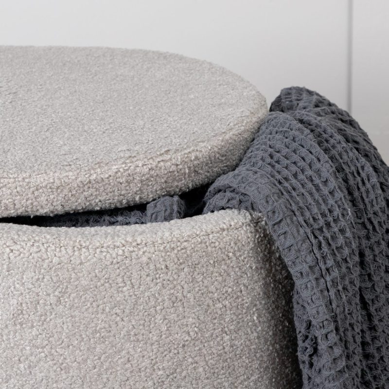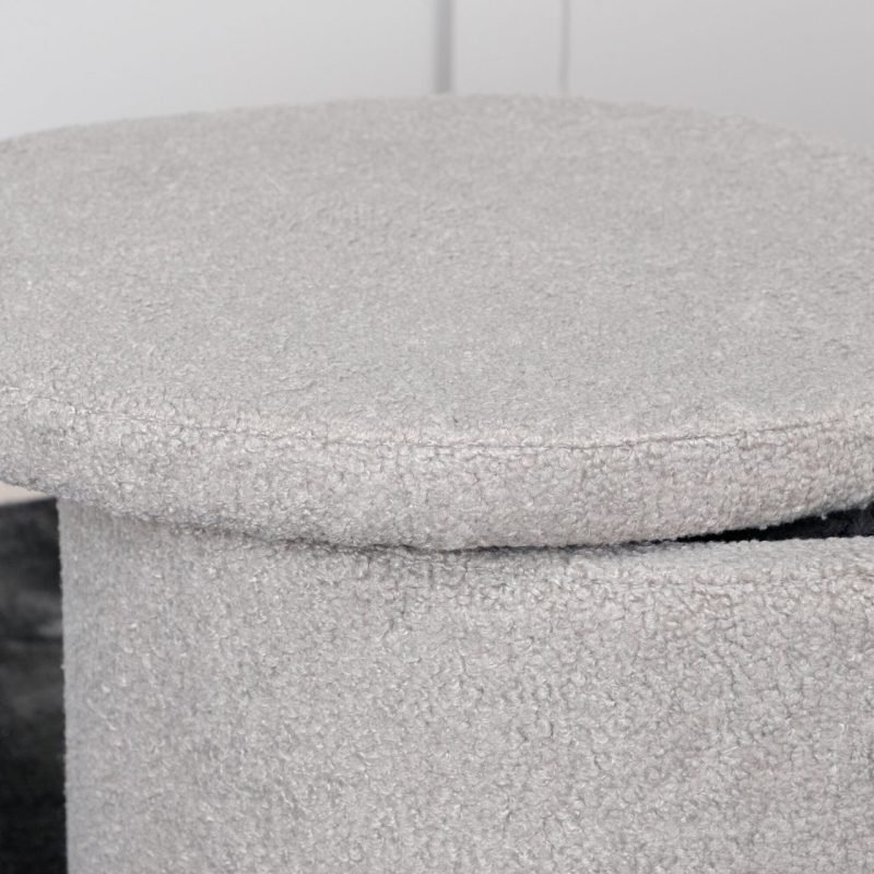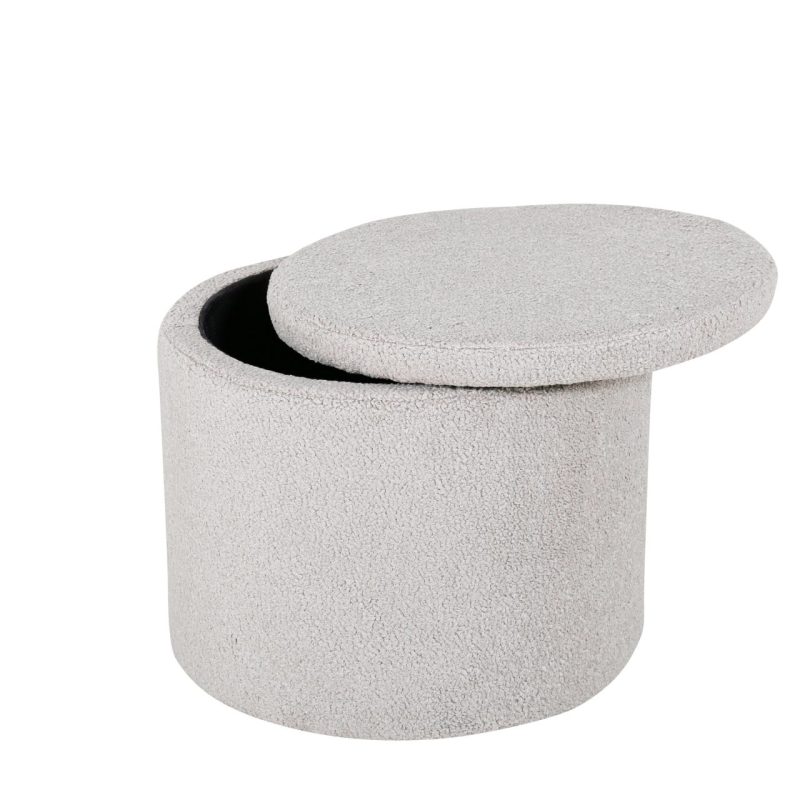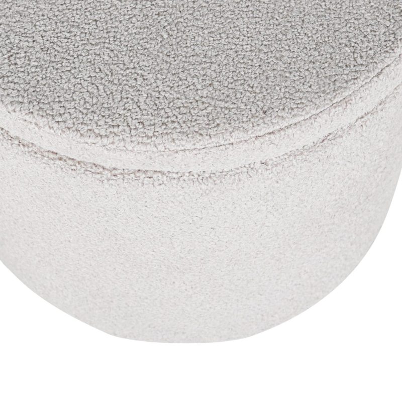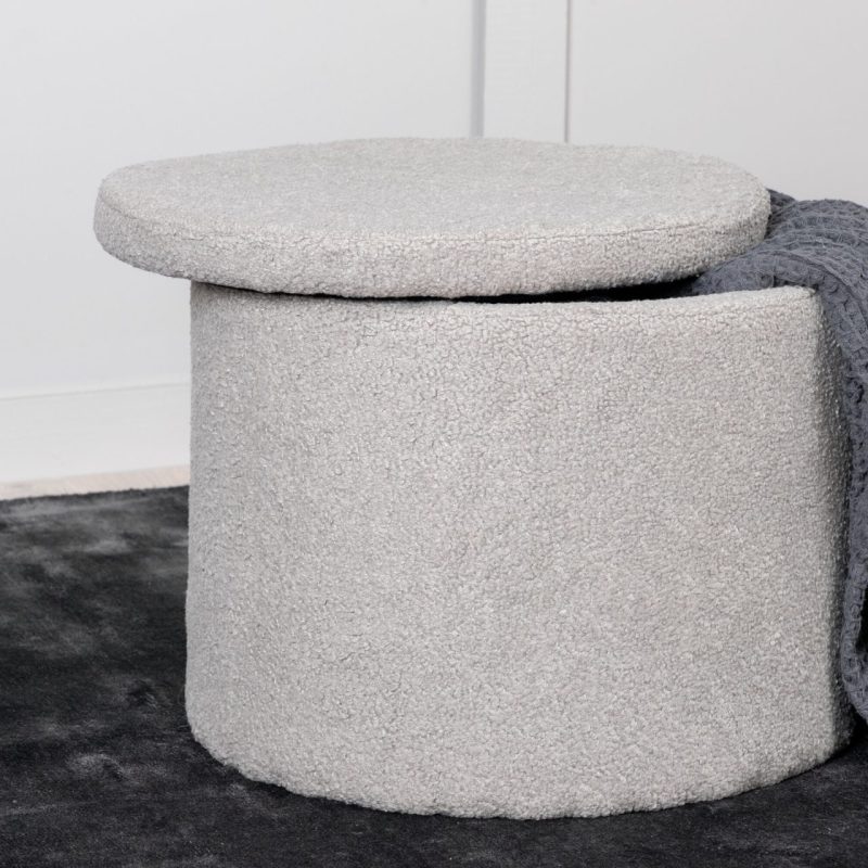 Tõsta oma kodukujundust Dunkeni pufiga trendikas hall Teddy kangas. See stiilne silindrikujuline istmepadi lisab mitte ainult hubase puudutuse, vaid pakub ka peidetud hoiuruumi eemaldatava kaane all. Ideaalne jalatugede, lisapingina või šiki dekoratiivse esemena. Mõõtmed: Kõrgus: 42,5 cm, Läbimõõt: 35 cm.