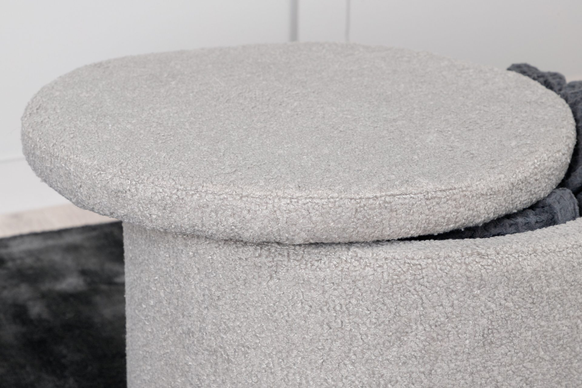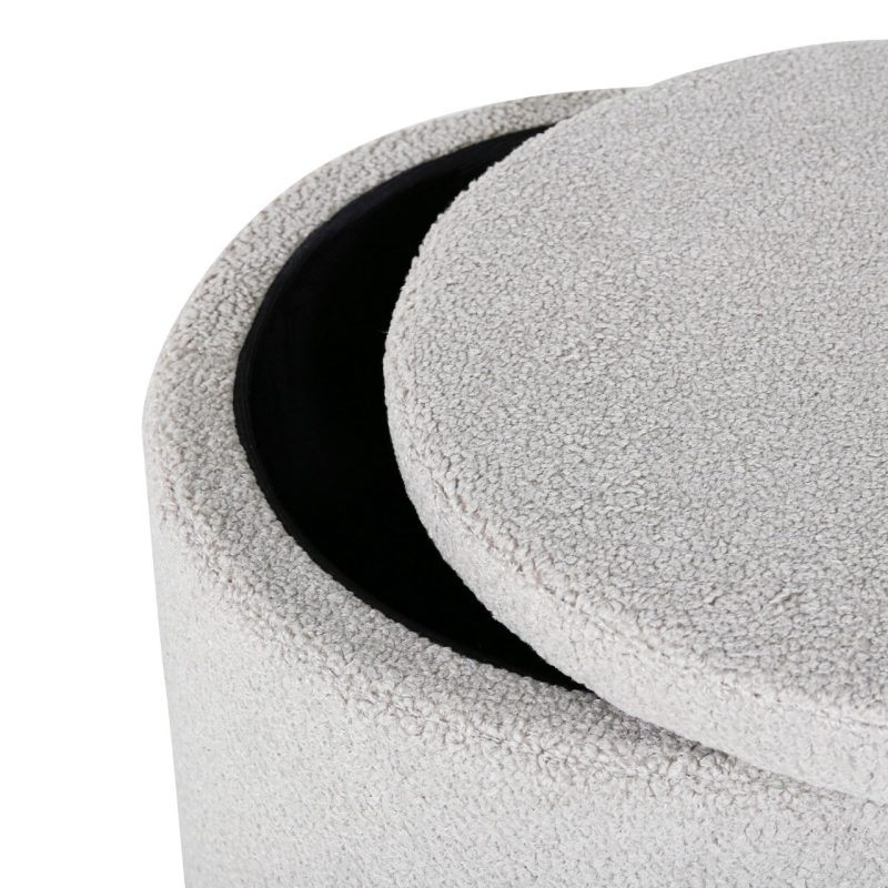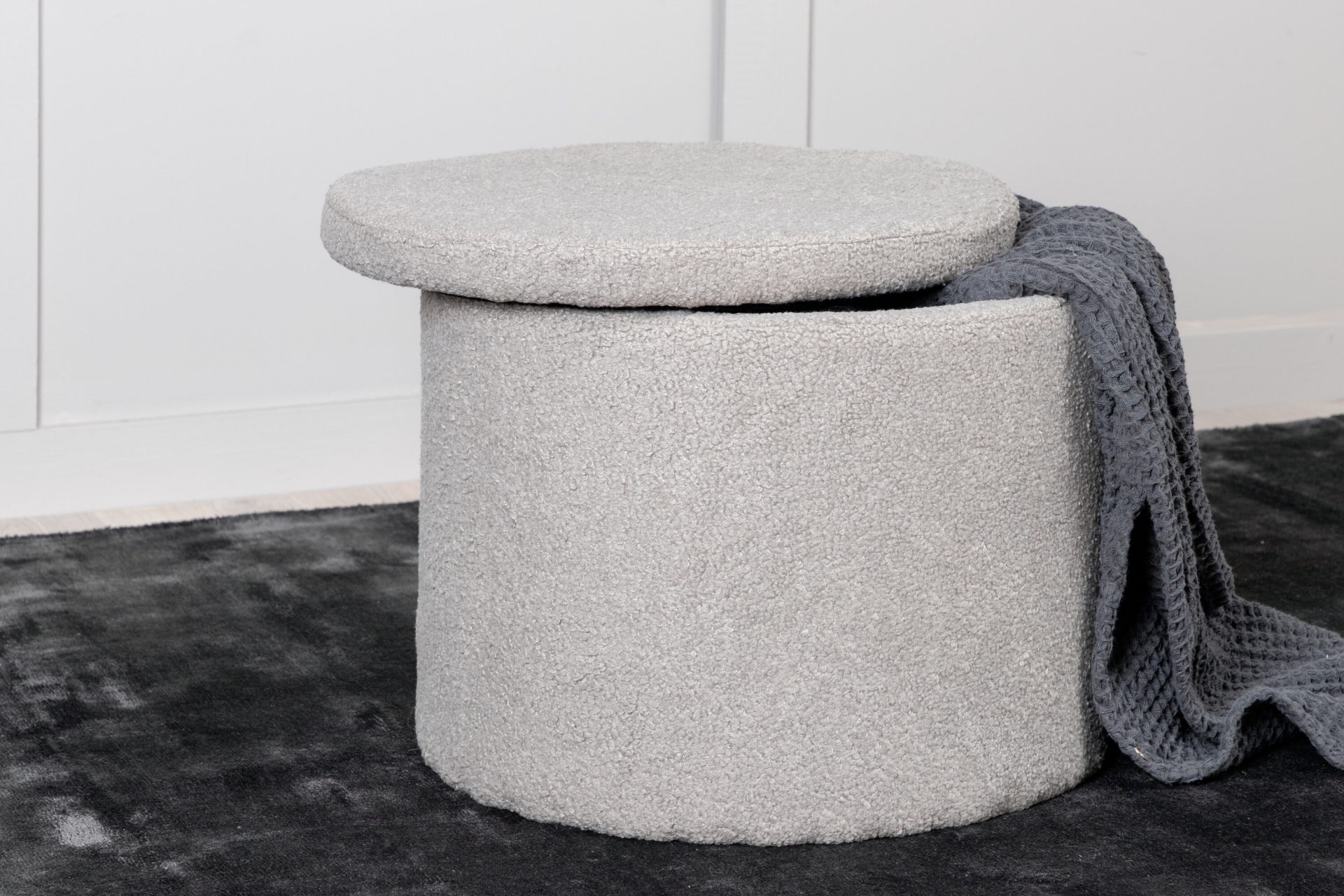 Tõsta oma kodukujundust Dunkeni pufiga trendikas hall Teddy kangas. See stiilne silindrikujuline istmepadi lisab mitte ainult hubase puudutuse, vaid pakub ka peidetud hoiuruumi eemaldatava kaane all. Ideaalne jalatugede, lisapingina või šiki dekoratiivse esemena. Mõõtmed: Kõrgus: 42,5 cm, Läbimõõt: 35 cm.