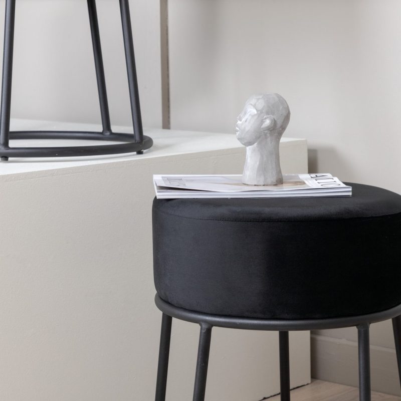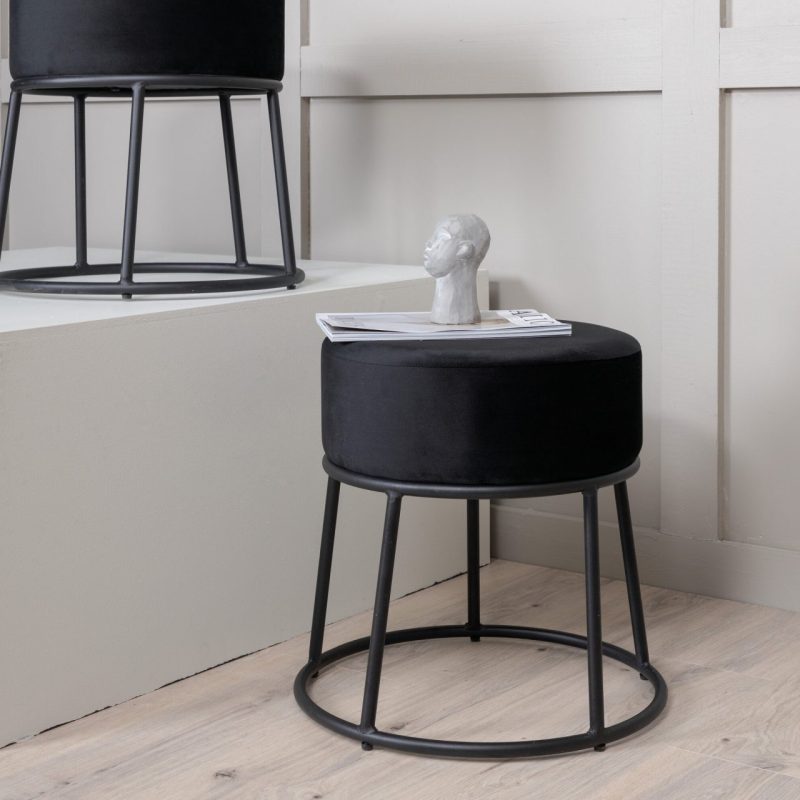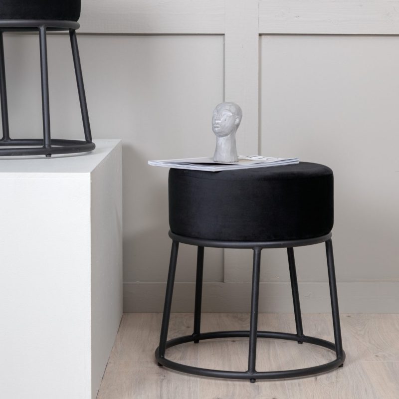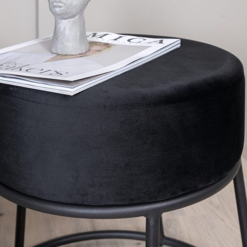 Tõstke oma kodu kaunistust Petra Pouf’iga Mustas Sametis. See stiilne istumispadi on mitmekülgne lisa, ideaalne kasutamiseks üksi või osana teie diivanikomplektist. Valmistatud vahust, puuvillakiust, sametkangast ja painutatud puidust, on sellel dekoratiivne silindrikujuline must rauast keha, mis lisab õhulist puudutust. Istumispadja mõõtmed on läbimõõt: 45,5 cm ja kõrgus: 46,5 cm.