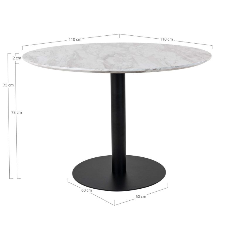 Bolzano söögilaud – Söögilaud, marmorist laud, mustad jalad Ø110x75cm