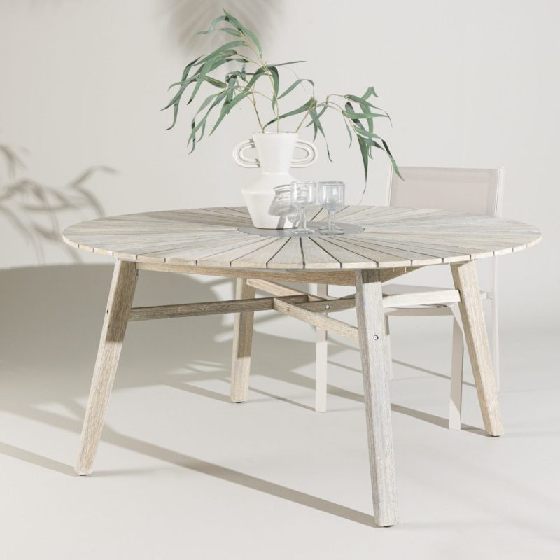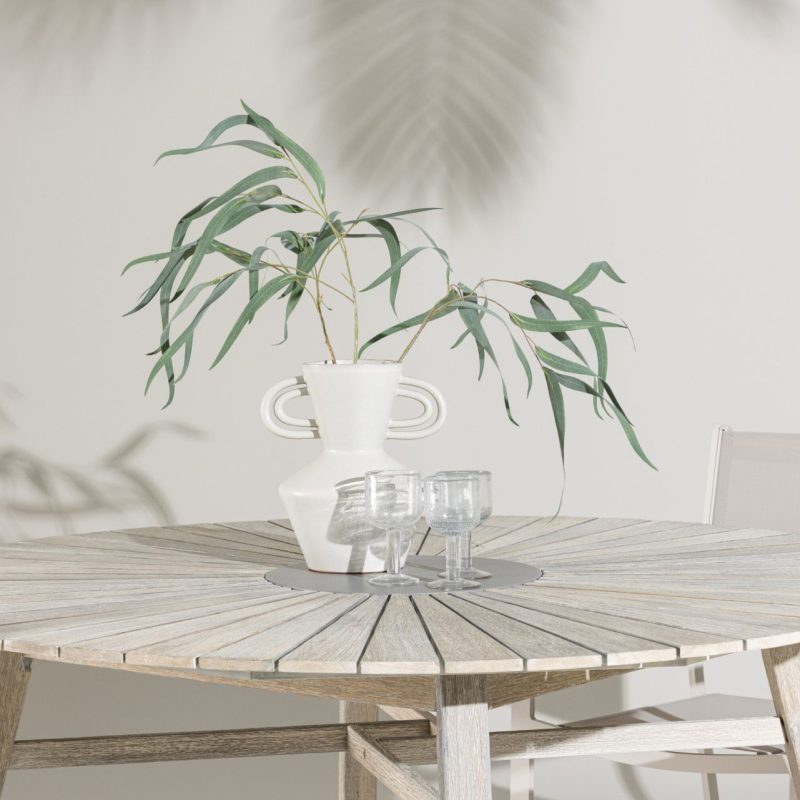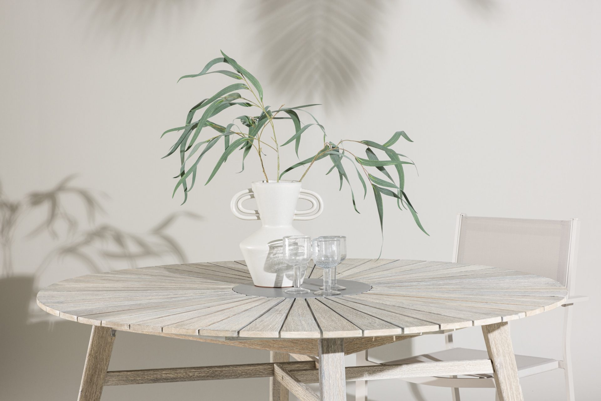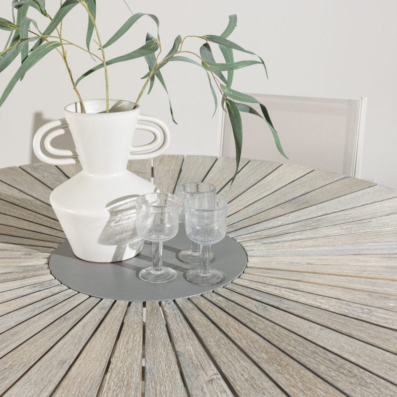 Tutvustame Rivesi – lauda ø 150 antiikvalges akaatsias ja hallis kivis. Looge suvise hõnguga võluv keskpunkt, mis toob pere kokku. See ümmargune söögilaud on varustatud kauni heleda akaatsiast alusega ning praktilise ja silmapaistva kivist plaadiga keskel. Ideaalne õueruumide ja rõdude jaoks, järgige meie hooldusnõuandeid pikaajalise vastupidavuse tagamiseks.