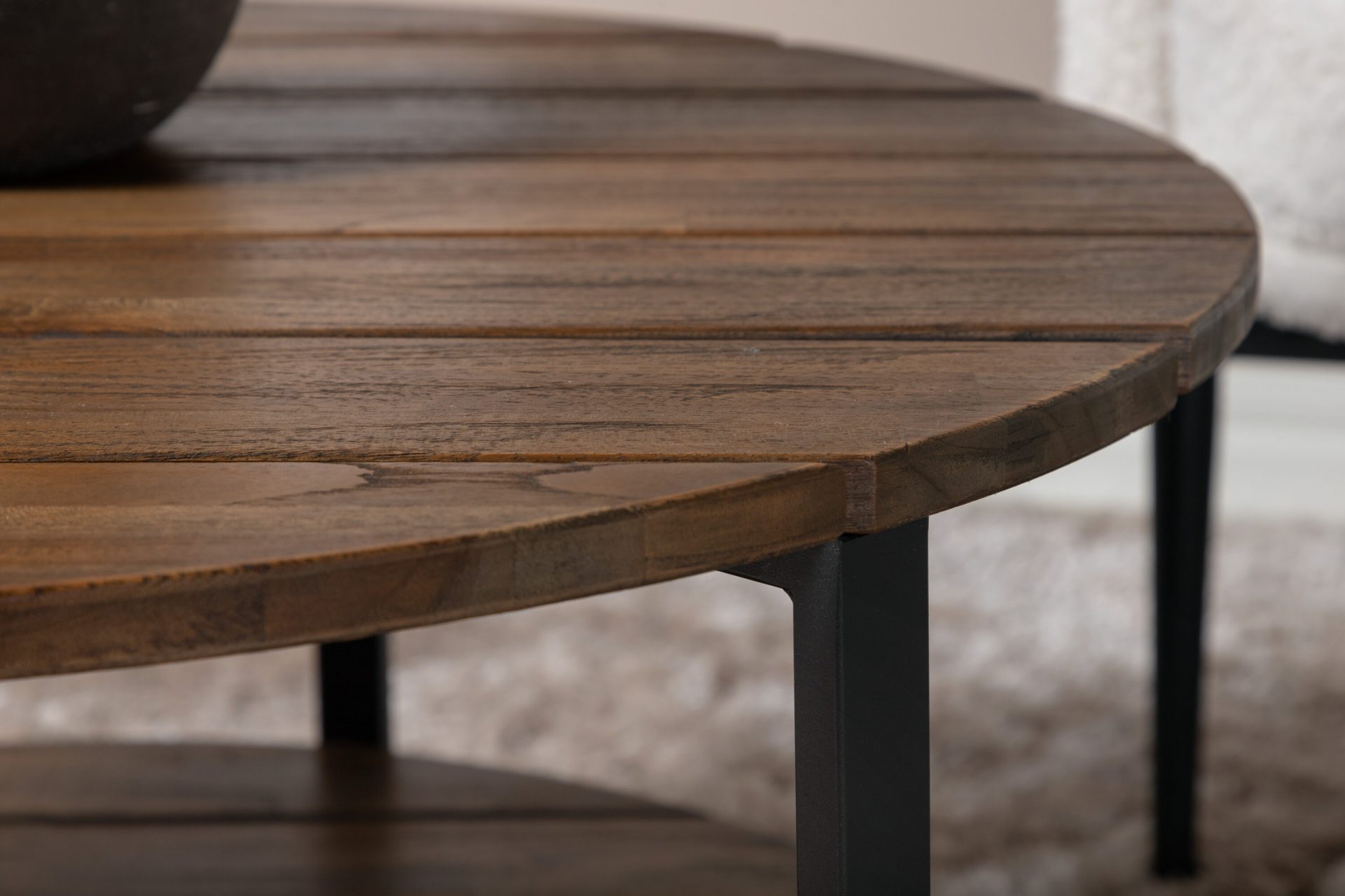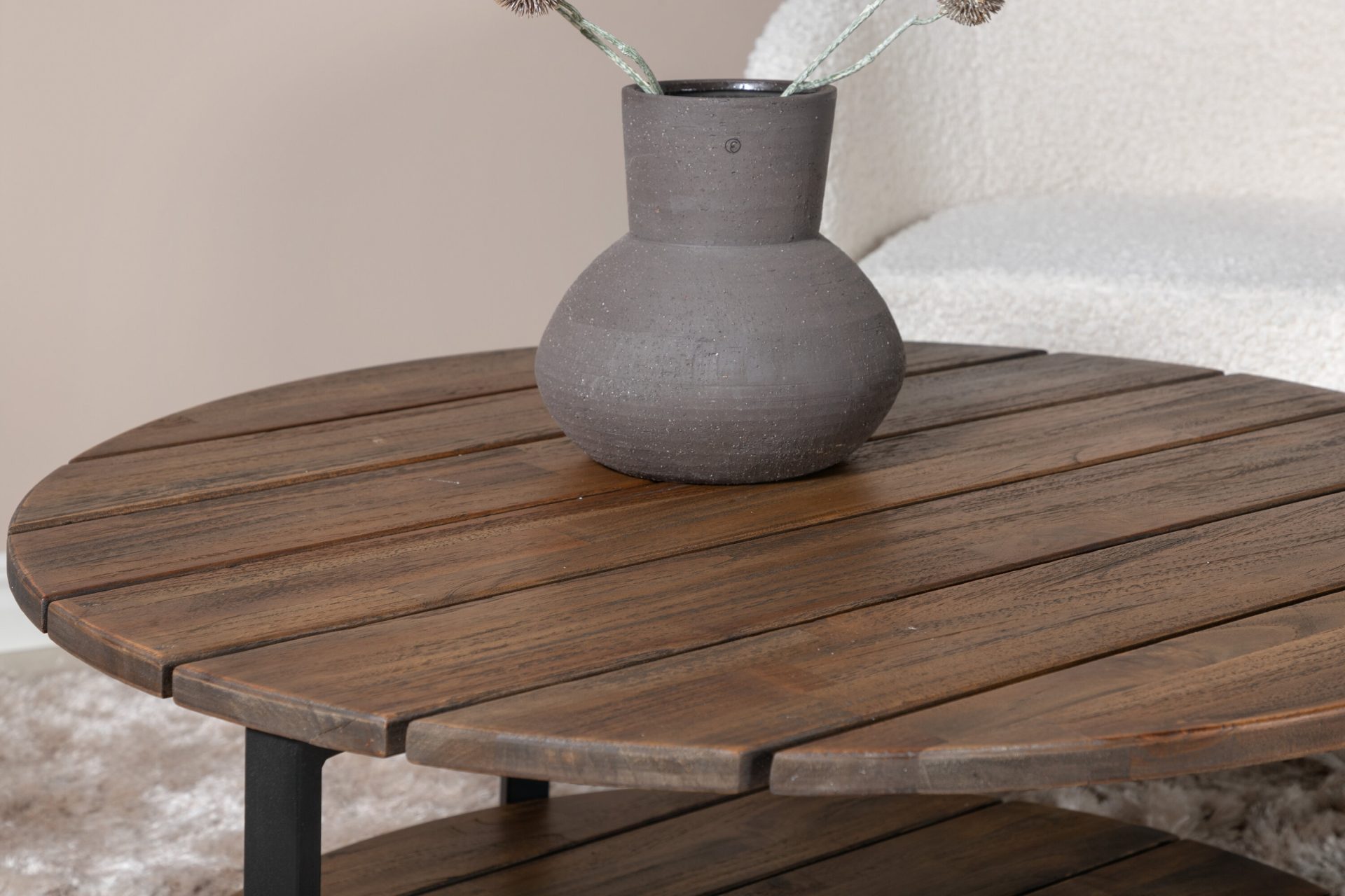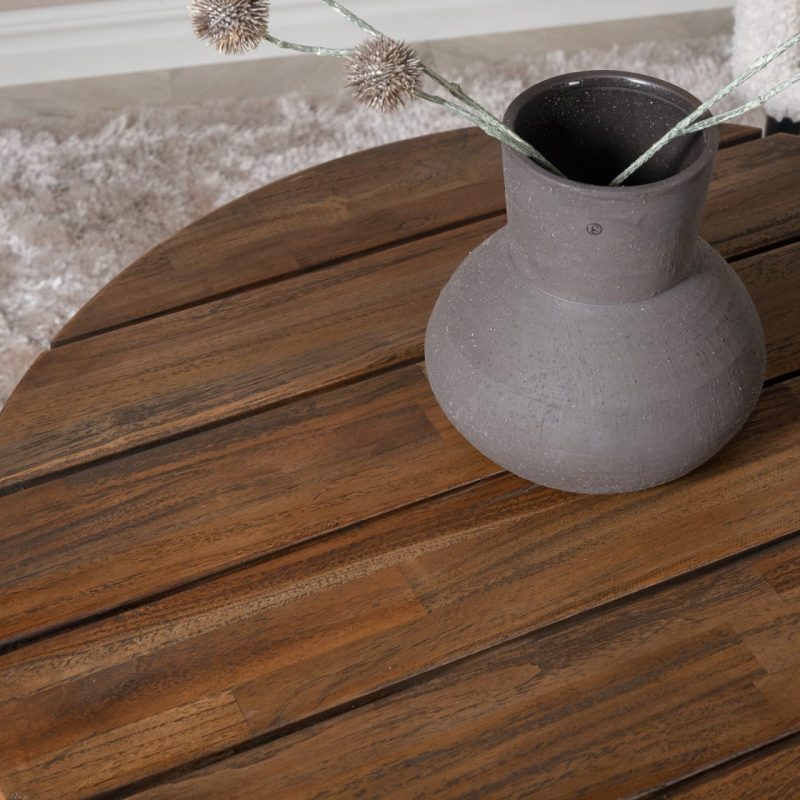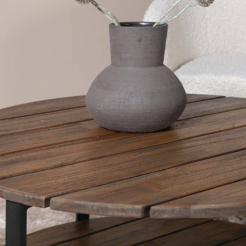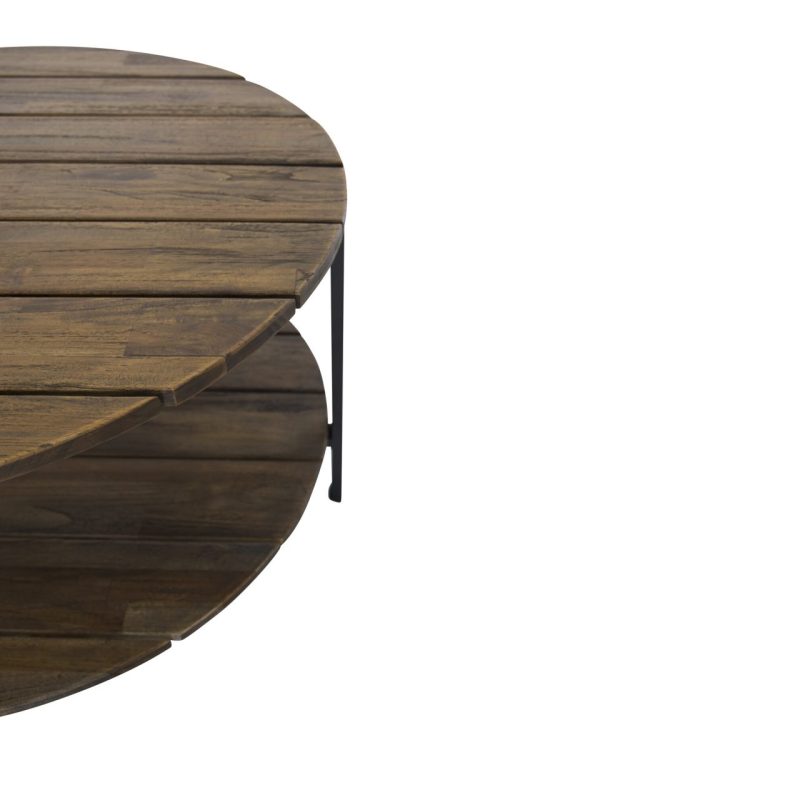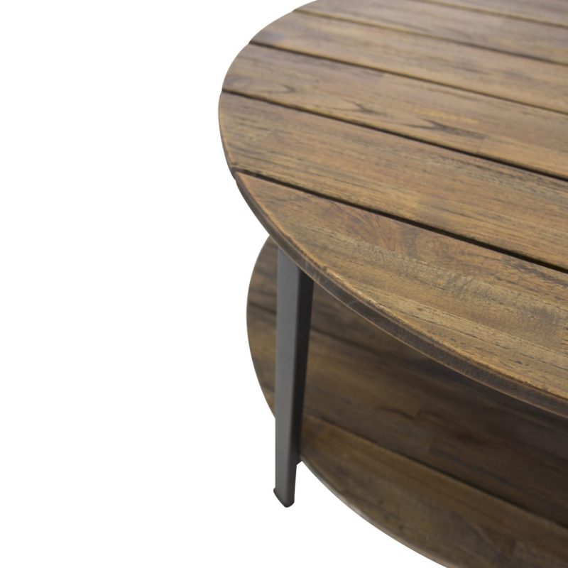 Tutvustame Jakarta kohvilauda – must / tumeteak – 80ø. Tõstke oma elutuba selle suurepärase esemega esile! See ümmargune kohvilaud on valmistatud vastupidavast ja soojast teakpuust, millel on loomulik teakvärv ja mustad aktsendid.
