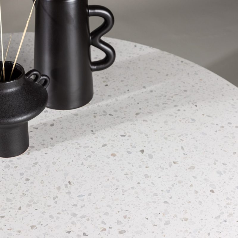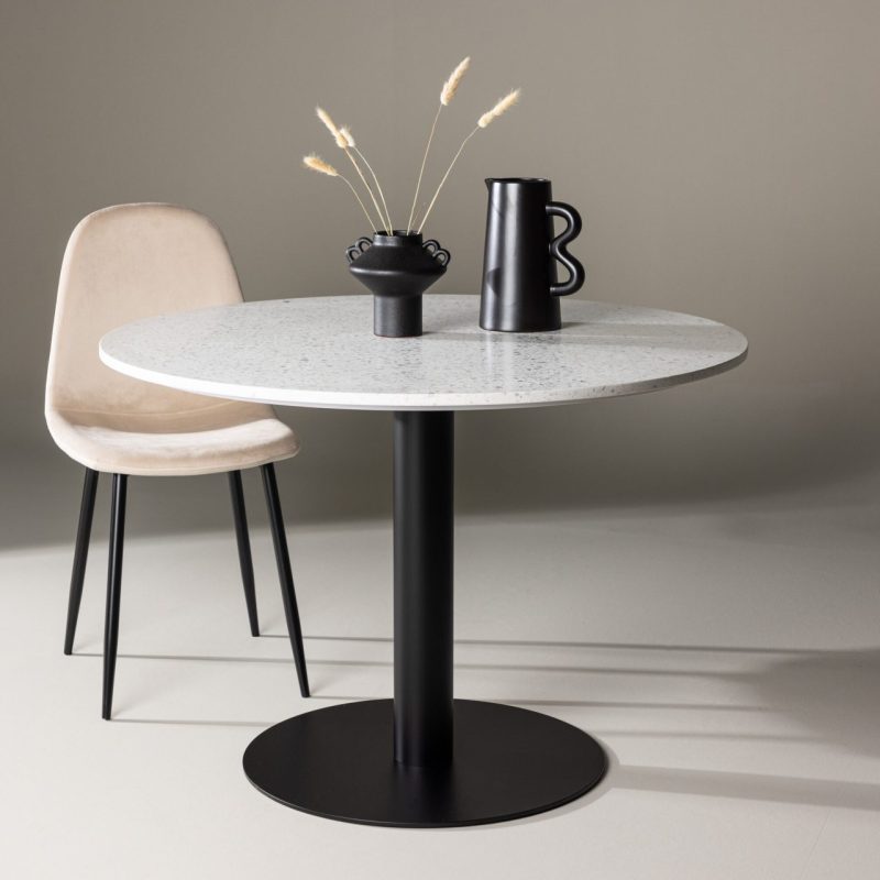 Tutvustame Razzia söögilauda 106cm, valge terazzo/must! See modernne ümmargune söögilaud on varustatud silmapaistva valge terazzo lauaplaadiga ja stiilse musta metallraamiga, ühendades endas tugeva disaini ja puhtad jooned. Ümmargune kuju loob hubase ja külalislahke atmosfääri, mis sobib suurepäraselt igasse söögisaali. Kombineerige seda oma lemmiktoolidega, et lisada oma sisustusele isiklikku puudutust.