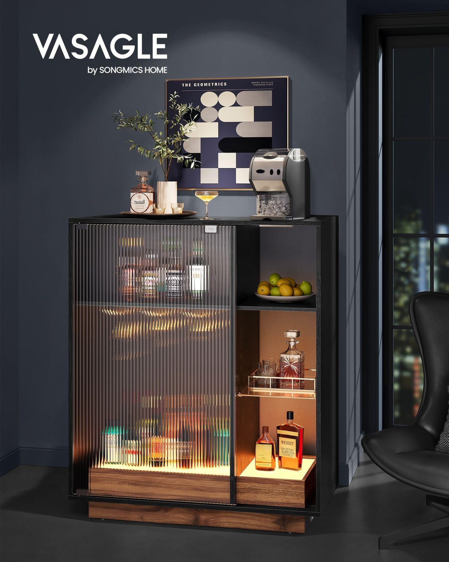See stiilne veinikapp on ideaalne lisand elutuppa või kööki, pakkudes elegantset hoiuruumi veinipudelitele ja klaasidele.