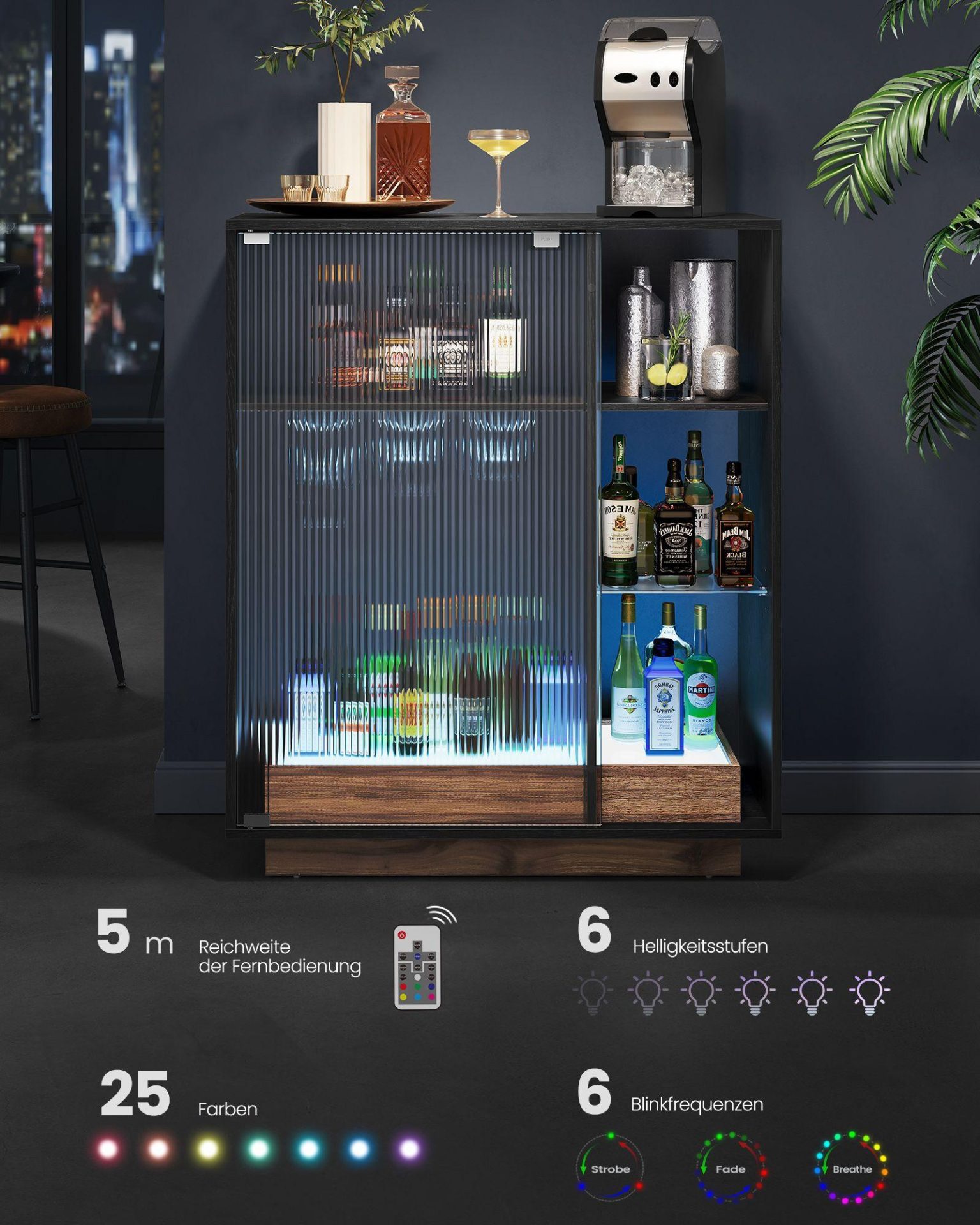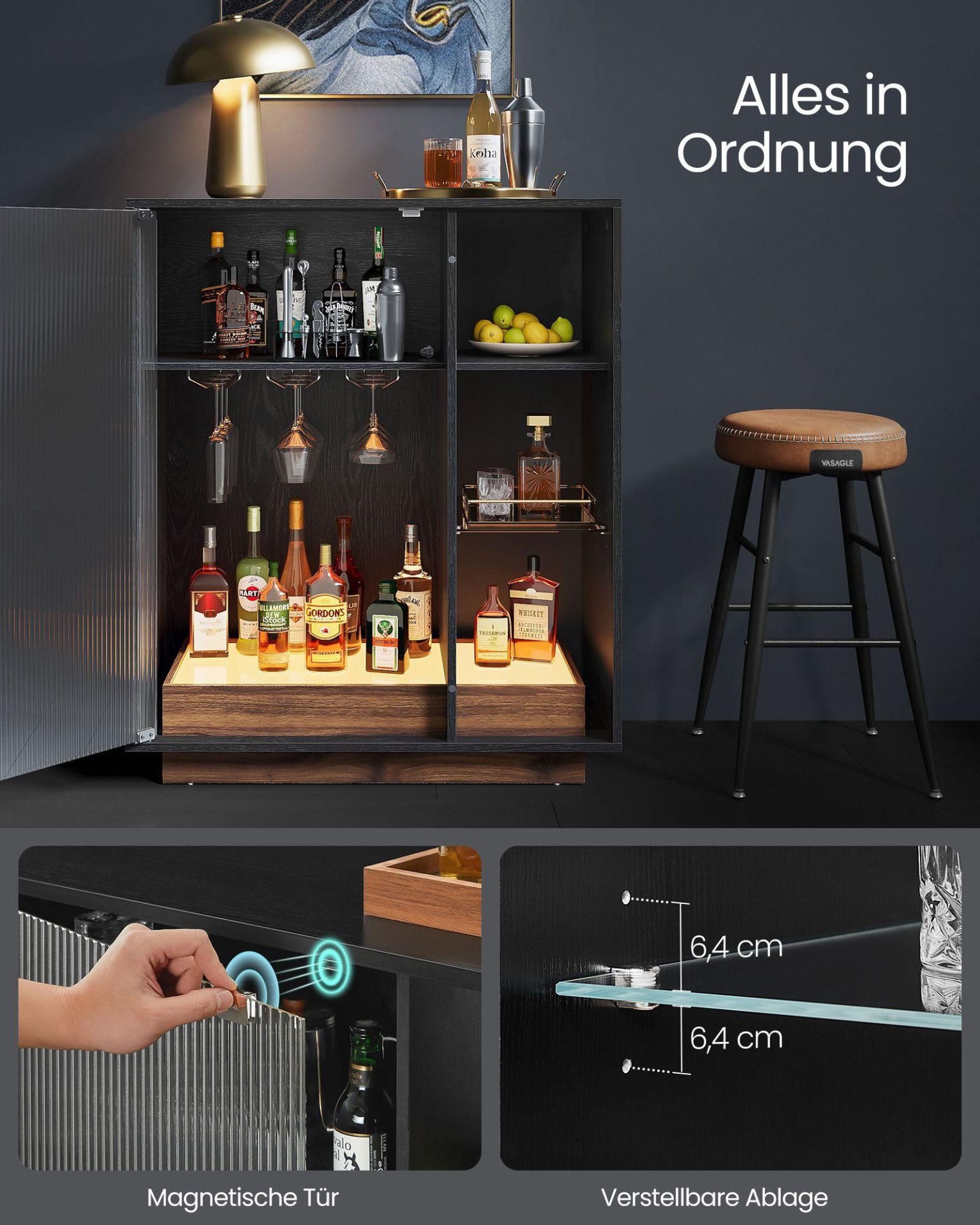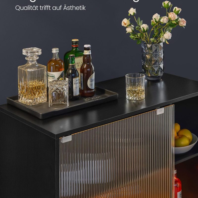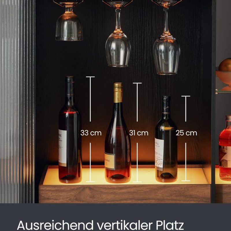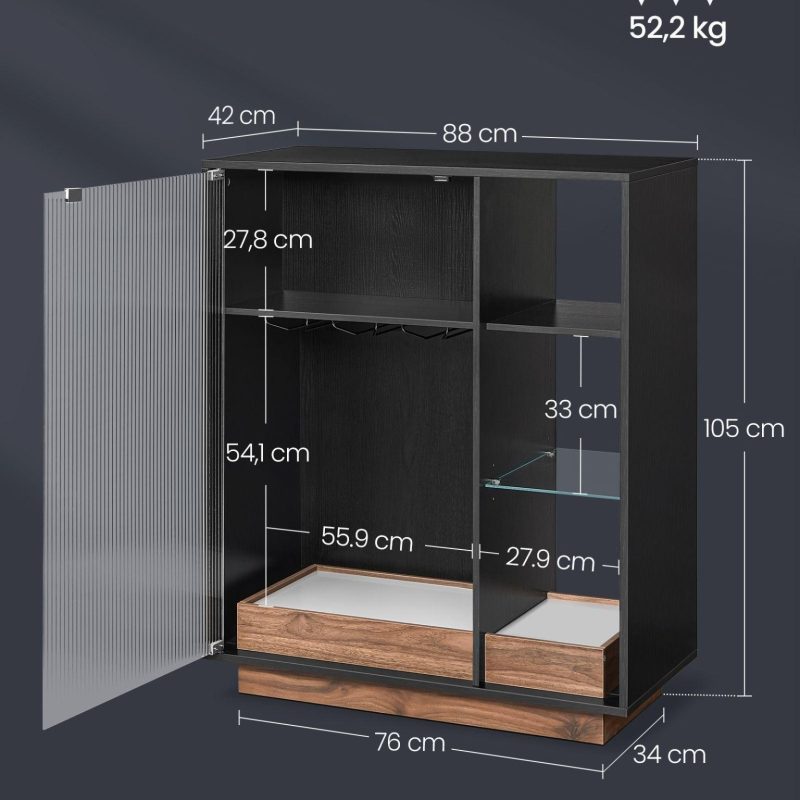 Veiniriiul must 42 x 88 x 105 cm on ideaalne valik, pakkudes stiilset ja funktsionaalset lahendust veinide ja klaaside hoiustamiseks ning eksponeerimiseks.