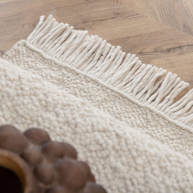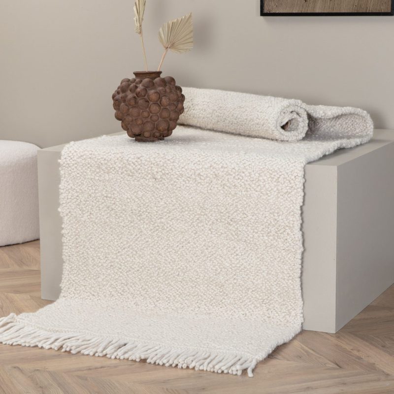 Tutvustame Betina villavaipa, luksuslikku lisandust teie elutoa sisustusele. Käsitsi kootud unikaalse sõlmtekstuuriga see villane vaip kiirgab mugavust ja stiili. Kaasaegne disain valges toonis lisab teie ruumi soojust, samas kui luukvalge narmasdetail suurendab selle võlu. Valmistatud kvaliteetsest villast, lubab see vastupidav vaip pikaajalist ilu. Hellitage oma jalgu mugava kogemusega selle 250×80 cm vaibaga.