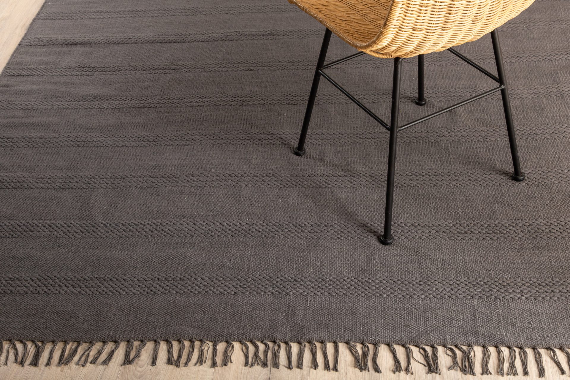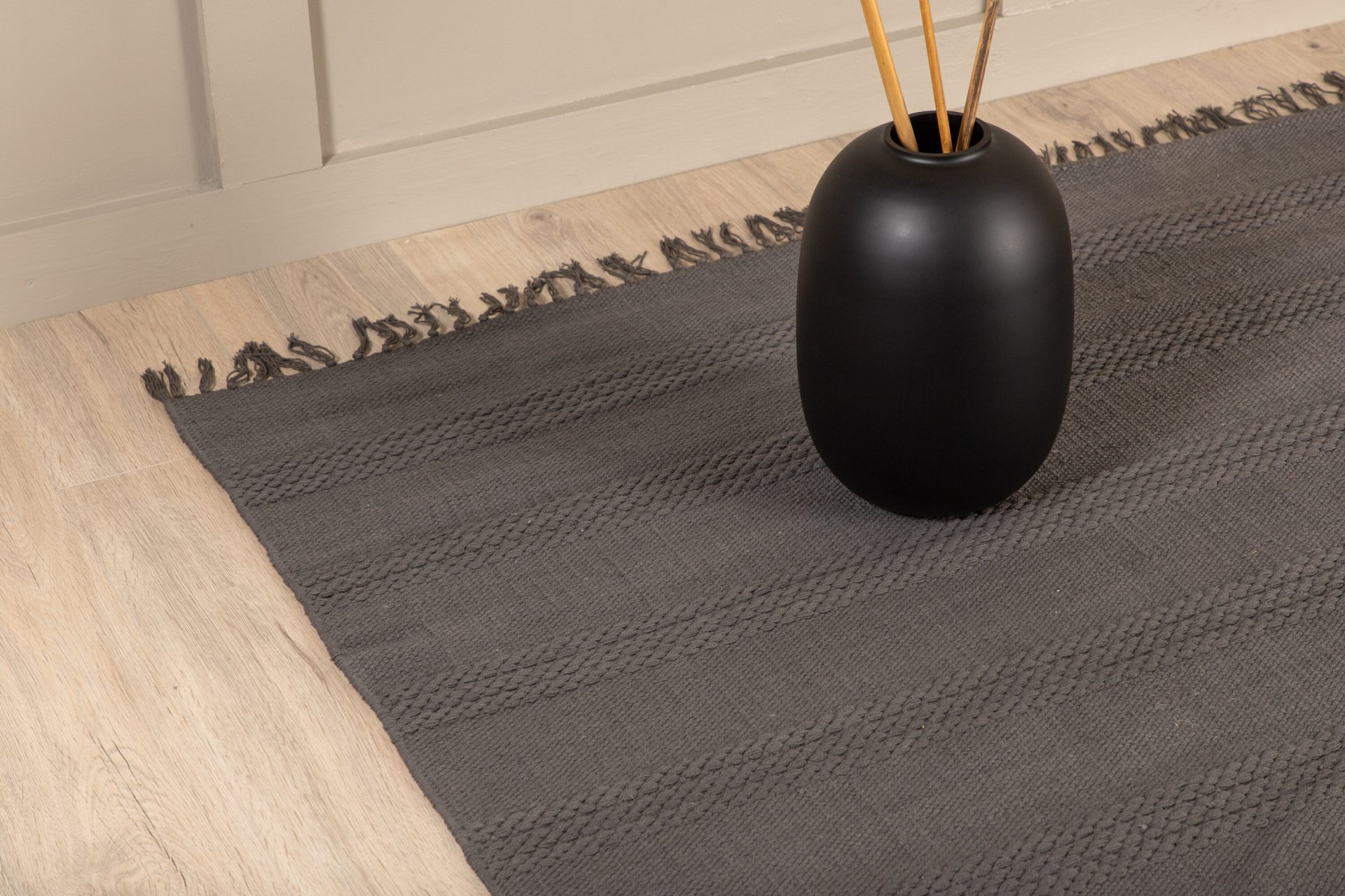 Tõsta oma dekoori Nico puuvillase vaibaga rahustavas hallis toonis. Käsitsi kootud, paeltega detailide ja dekoratiivsete ripsmetega, lisab see 230×160 cm suurune vaip igasse ruumi hubasust. Ideaalne elutoas või magamistoas kasutamiseks. Ära unusta kasutada libisemisvastast katet, et see paigal püsiks. Hooldusnõuanded: puhasta plekke kohapeal ja harja või tolmuime regulaarselt, et säilitada selle ilu. Pööra, et vältida päikesevalgusest tingitud värvimuutusi.